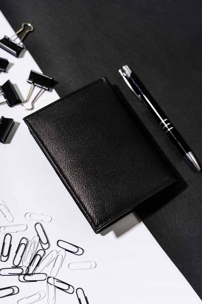 • Męska klasyka | Elegancki design, w czarnej kolorystyce. Portfel o orientacji pionowej;