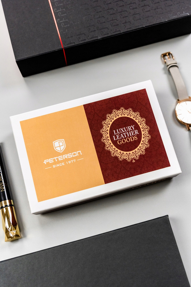 Całość mieści się w sprytnie zaprojektowanym portfelu, który zapewnia doskonałą organizację. Praktyczne zamknięcie na zatrzask oraz osobna komora na bilon z przedziałką, zamykana na suwak, gwarantują wygodny dostęp i solidne zabezpieczenie zawartości.