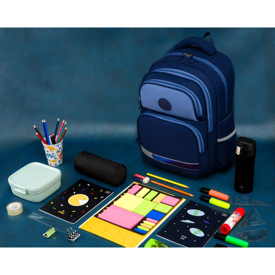 - 2 główne komory zapinane na zamki błyskawiczne zapewniają odpowiednią ilość miejsca na książki, zeszyty czy laptopa.