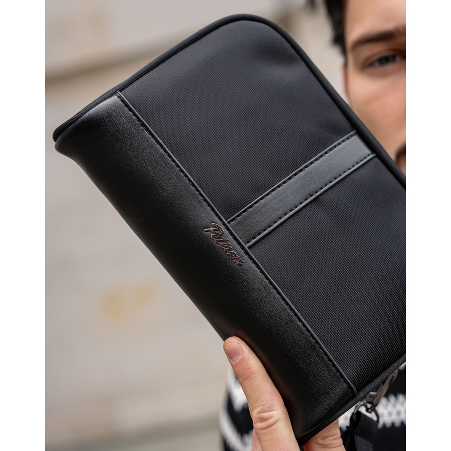 Saszetka męska do ręki wykonana z poliestru i skóry ekologicznej w czarnym kolorze - Peterson