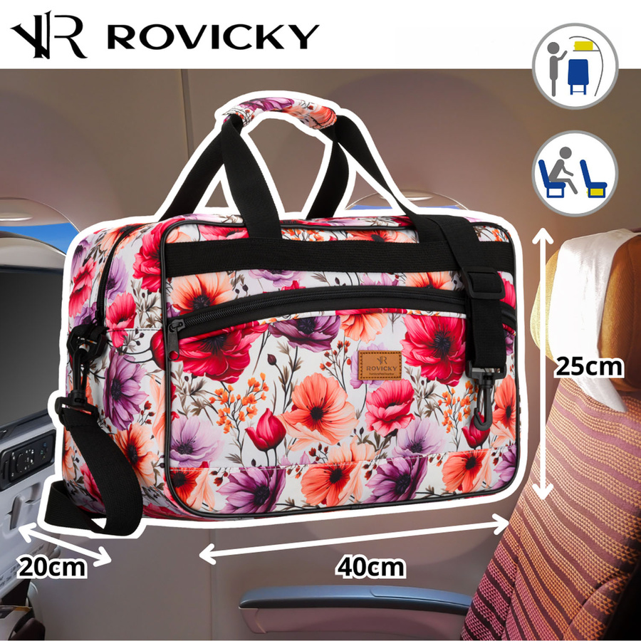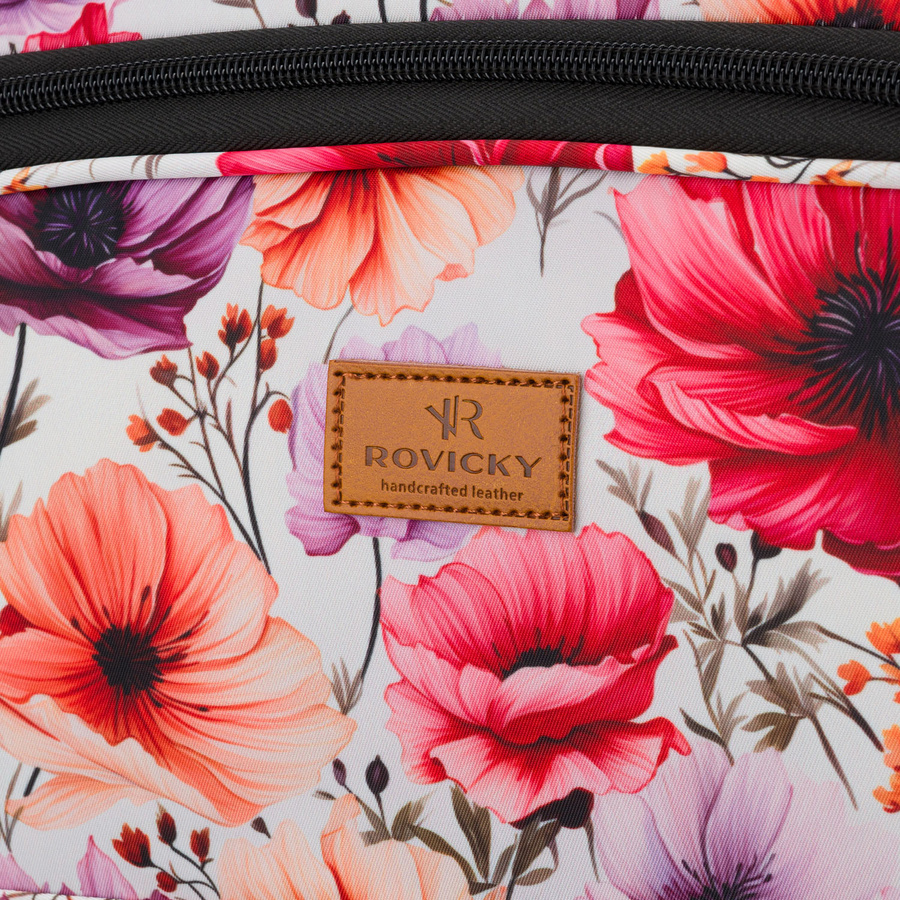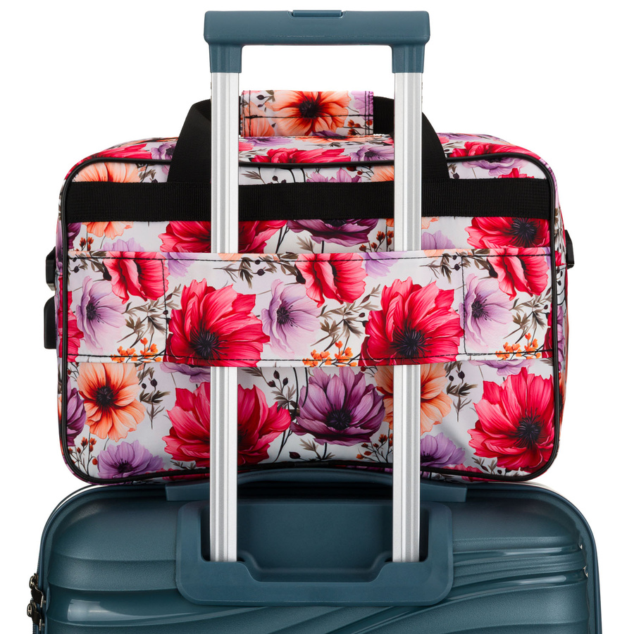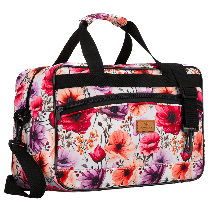 Wielokolorowa torba podróżna z wytrzymałego poliestru z portem USB, pokryta roślinnym wzorem - Rovicky