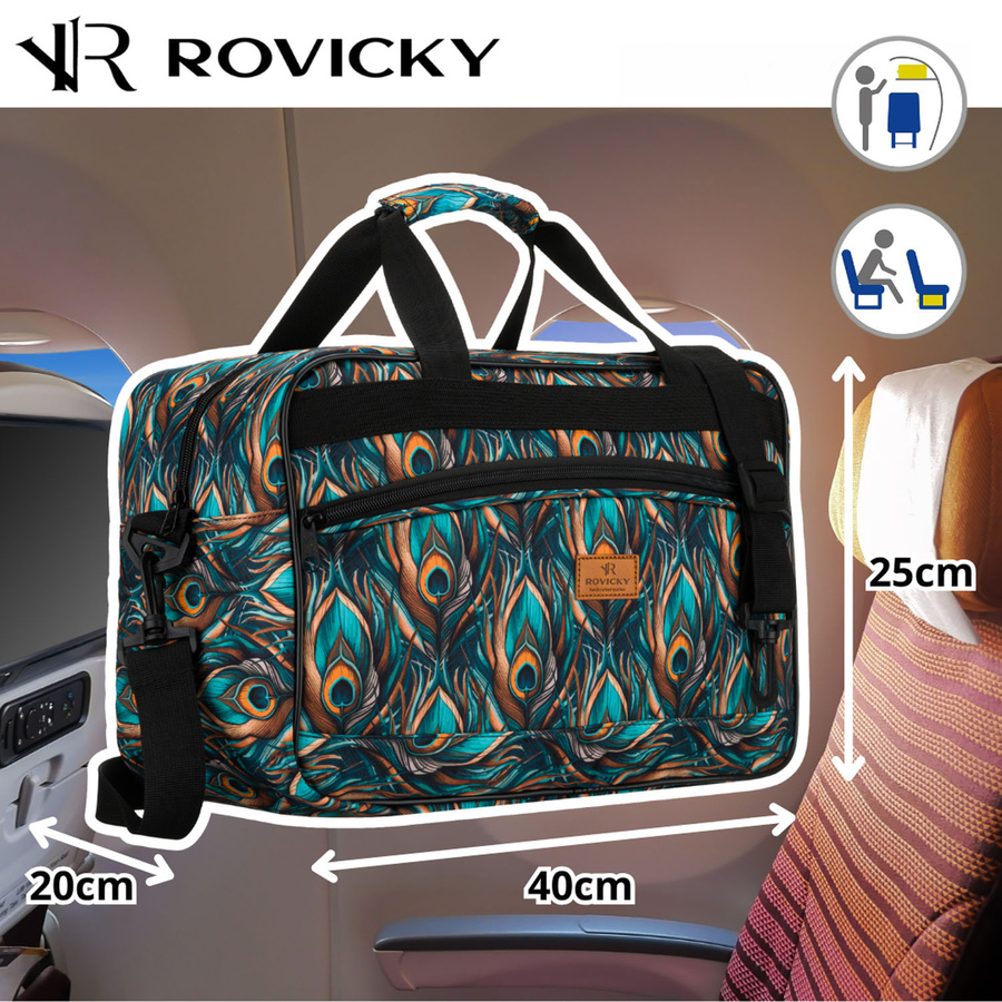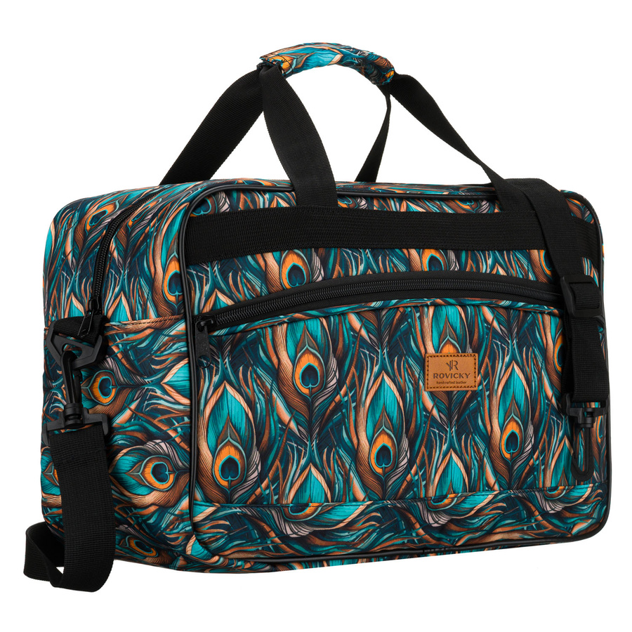 Torba podróżna z wytrzymałego poliestru z roślinnym wzorem wyposażona w dopinany pasek - Rovicky