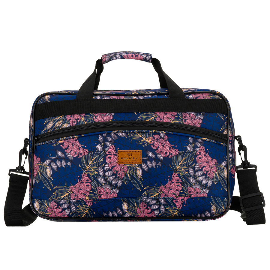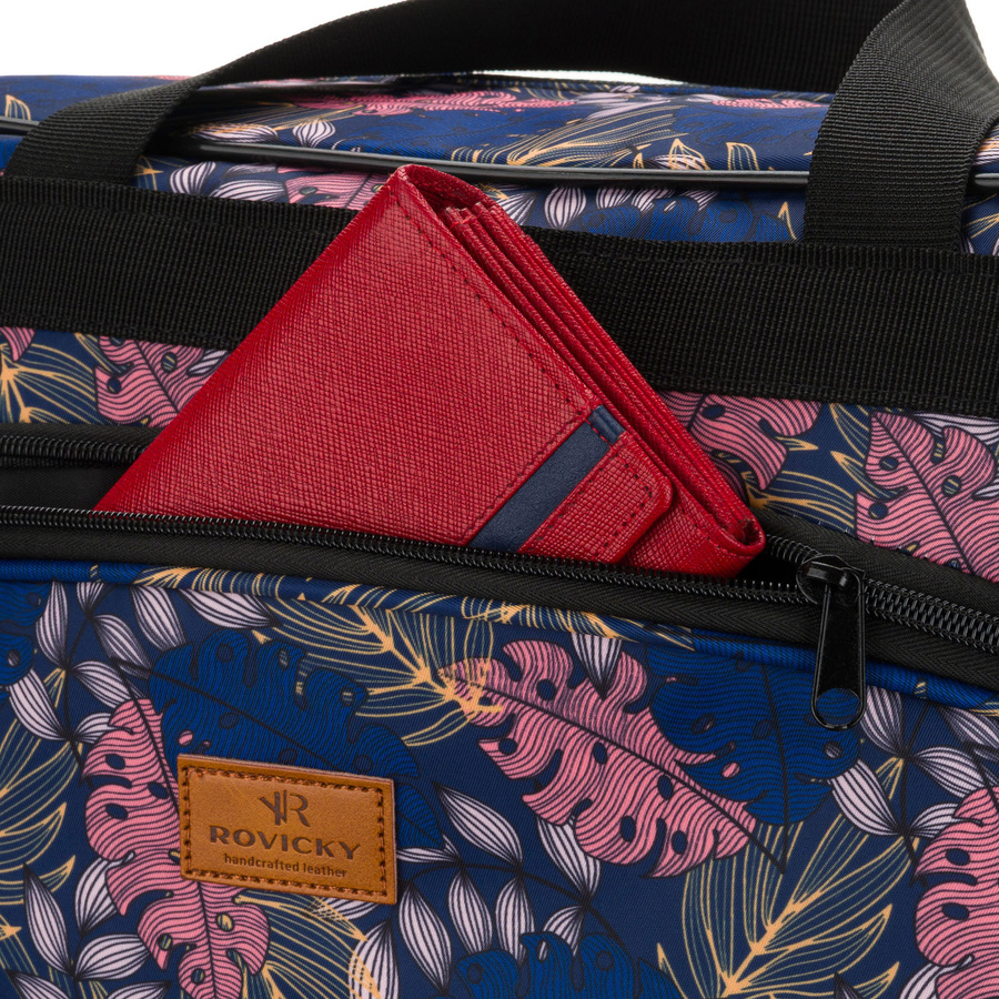 Torba podróżna wyposażona w dopinany pasek i zewnętrzną kieszeń zapinaną suwakiem - Rovicky