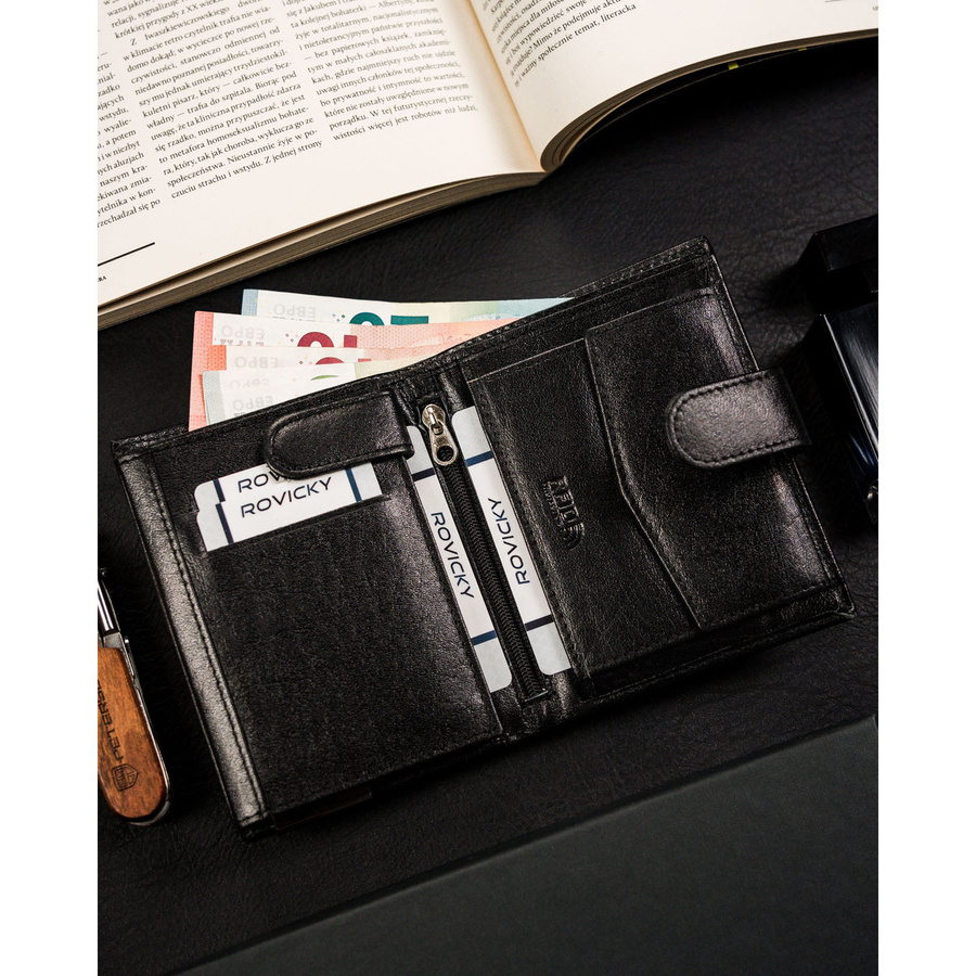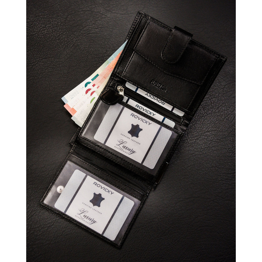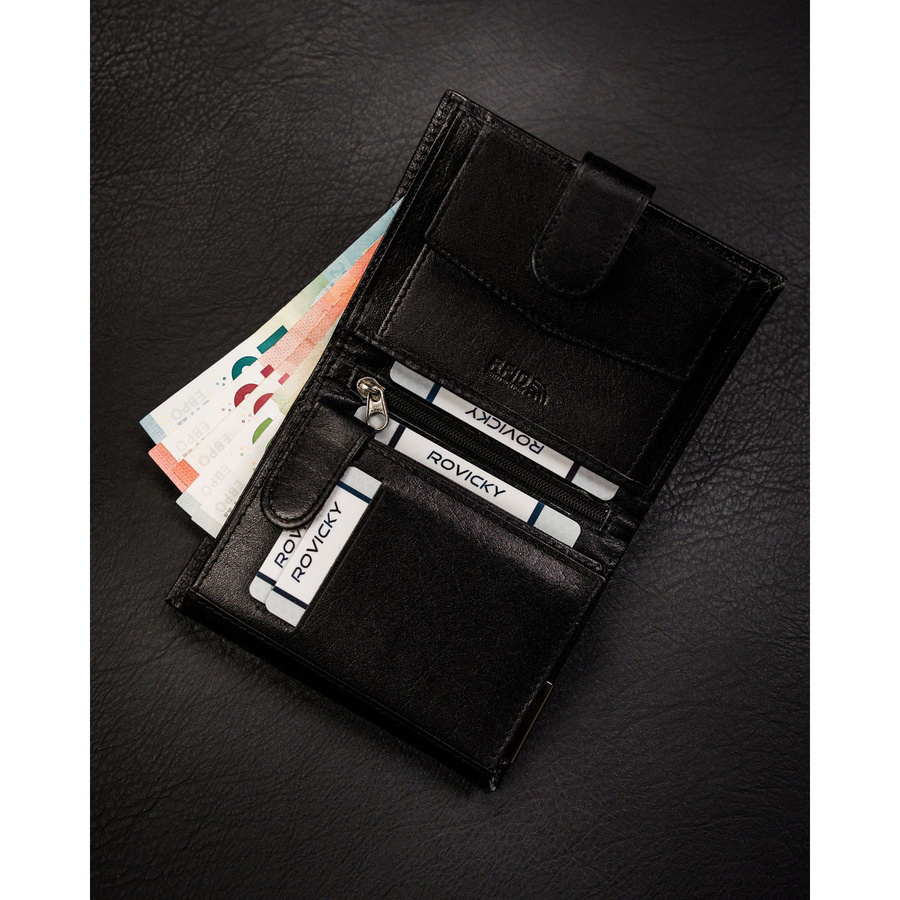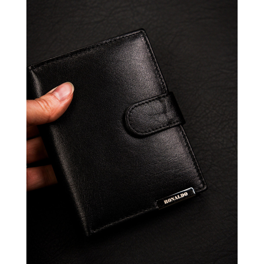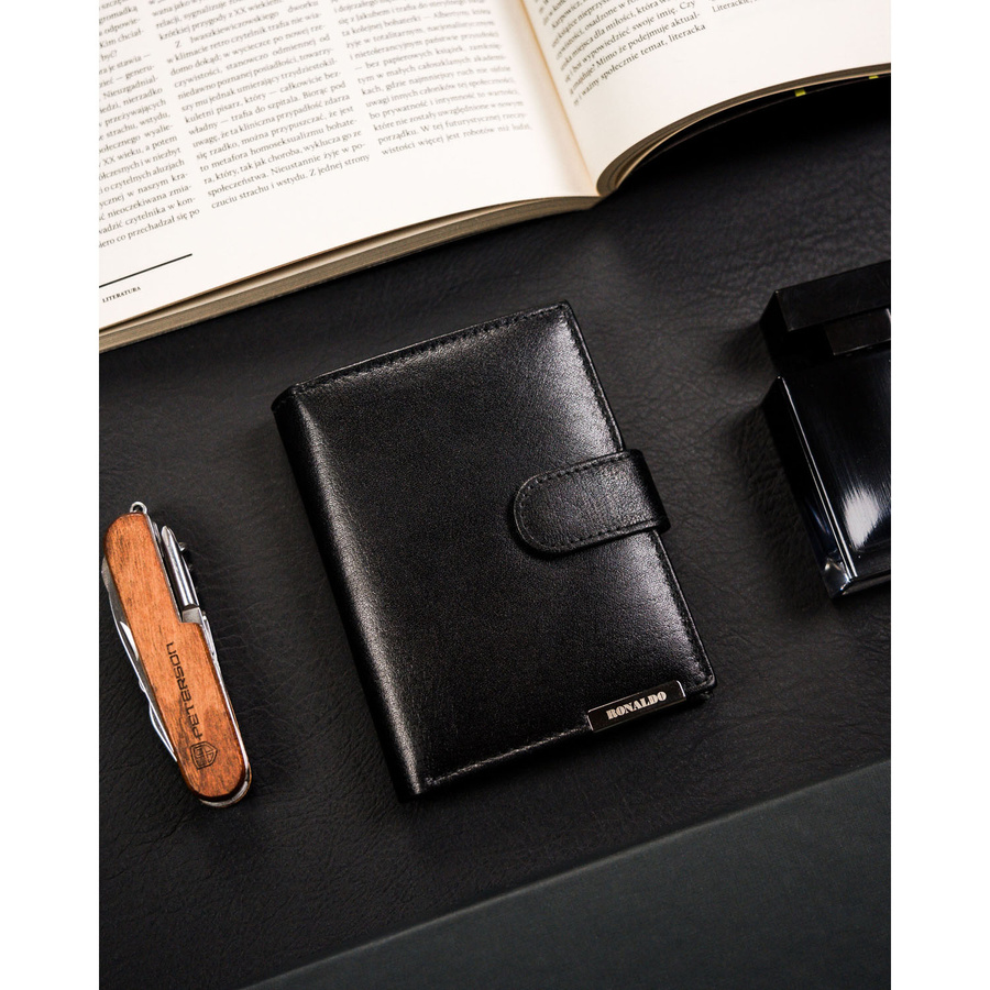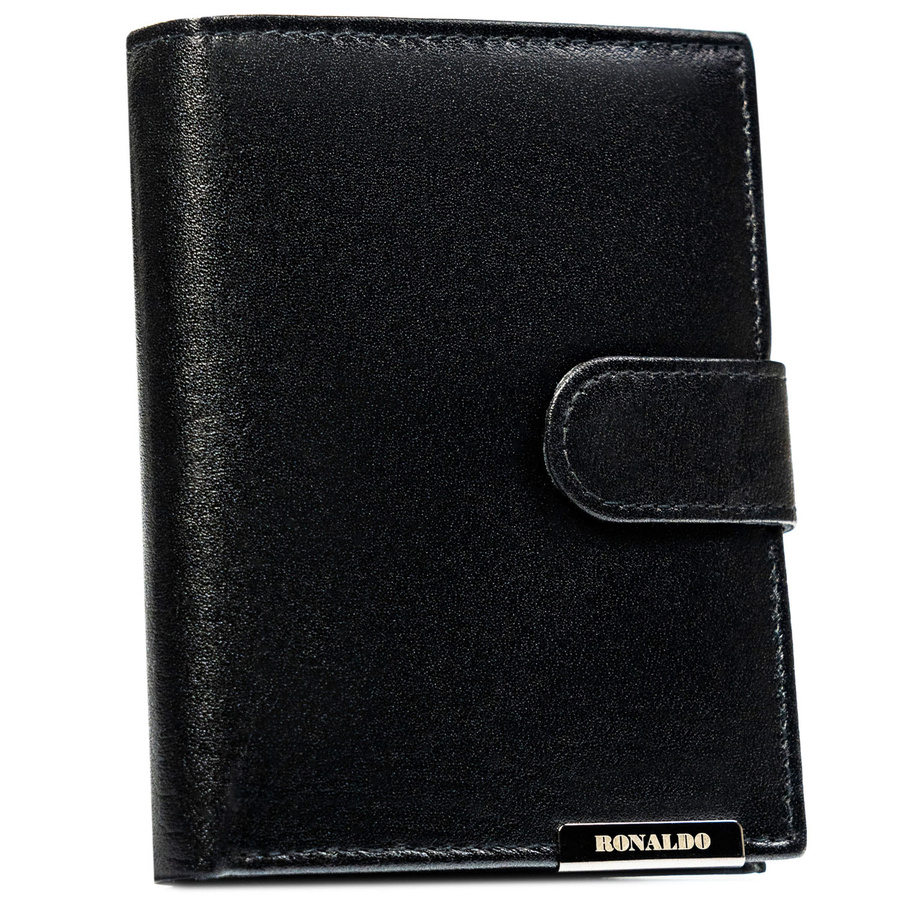 Duży, pionowy portfel męski ze skóry naturalnej w czarnym kolorze zamykany na zatrzask - Ronaldo
