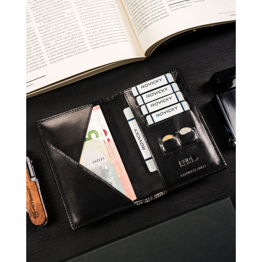 Czarne etui na karty i paszport wykonane ze skóry naturalnej - 4U Cavaldi