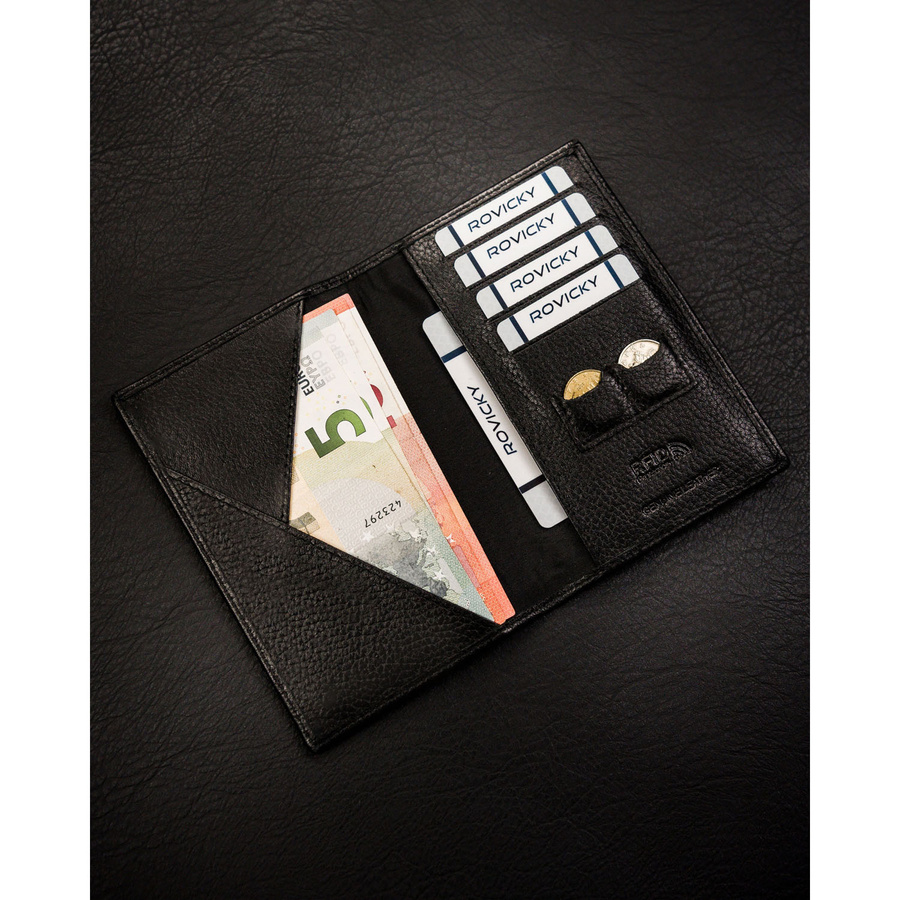Stylowe, pionowe etui wykonane z wysokiej jakości skóry naturalnej. Idealnie sprawdzi się w podróży – zmieści paszport, dowód rejestracyjny, karty, gotówkę, a nawet małe monety czy karty SIM.