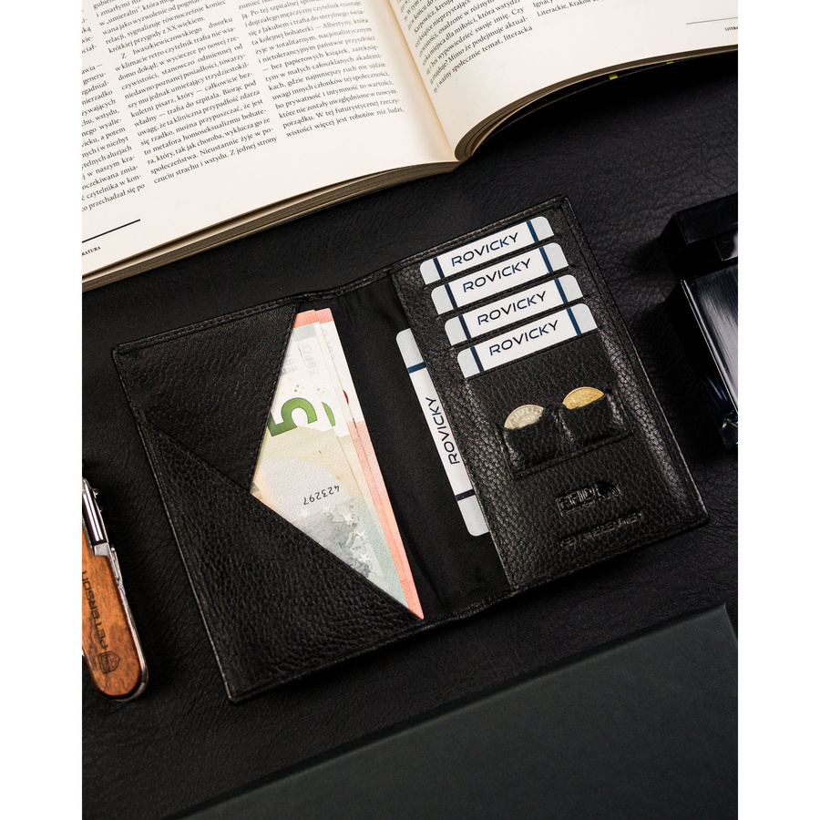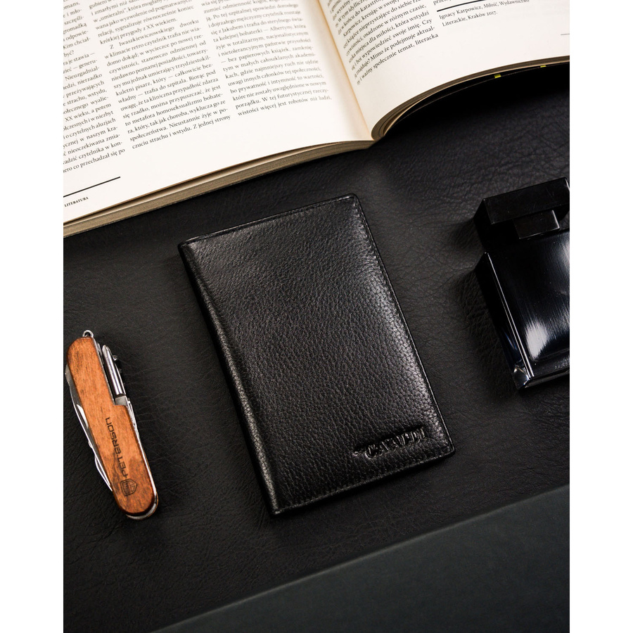 Czarne etui na karty i paszport bez zapięcia zewnętrznego wykonane ze skóry naturalnej - 4U Cavaldi