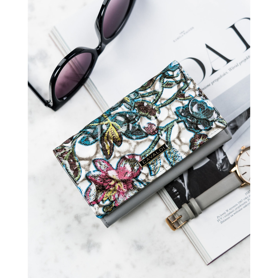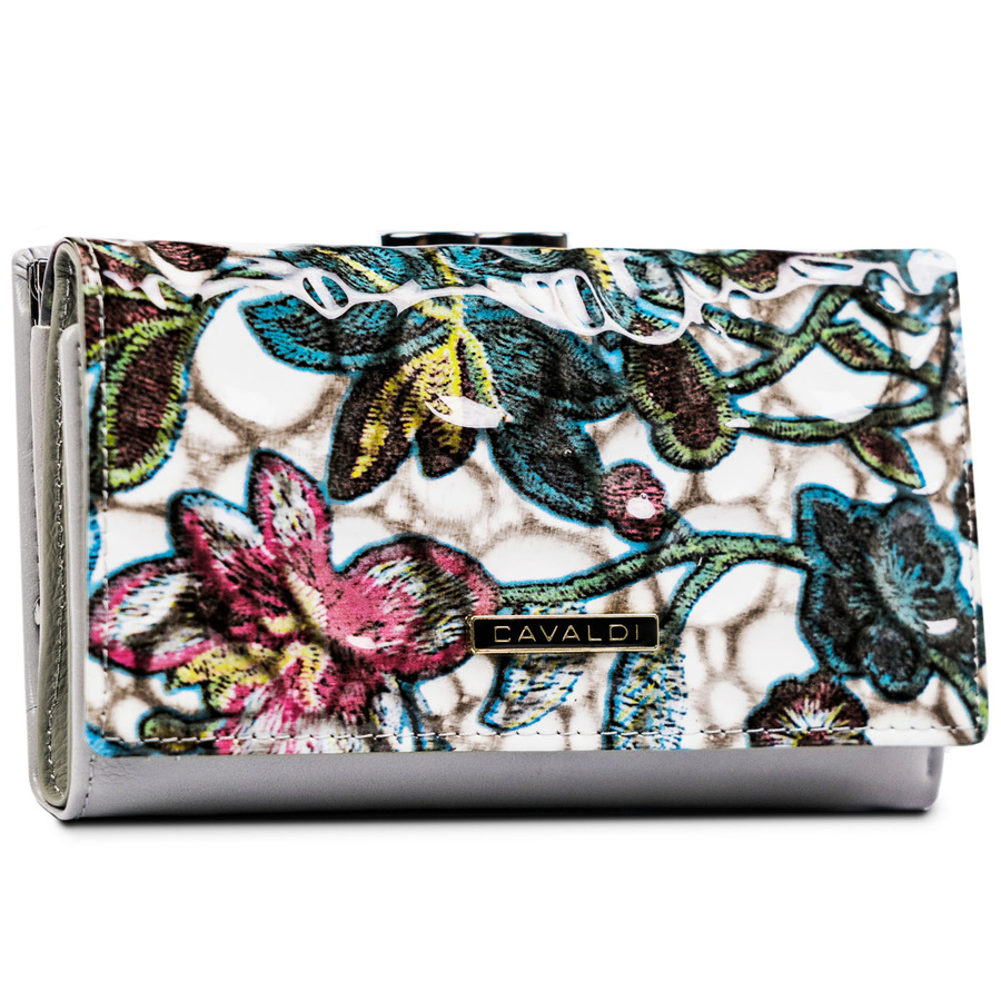 Portfel damski w kwiaty zamykany biglem i zatrzaskiem - 4U Cavaldi