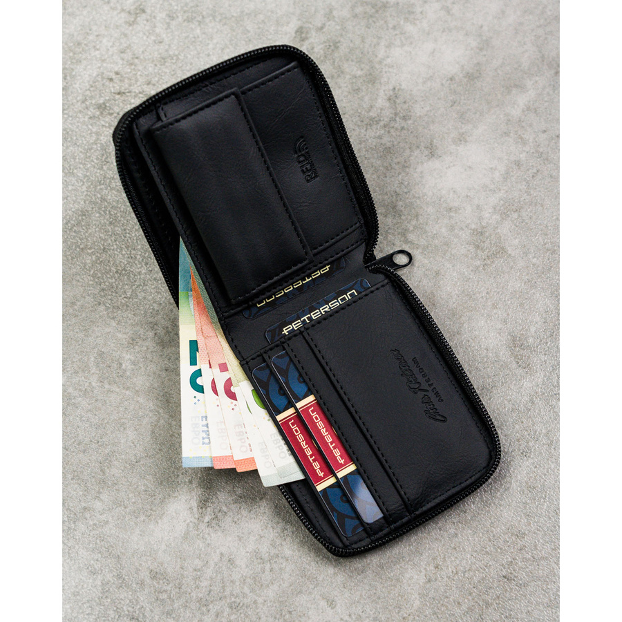Portfel męski w czarnym kolorze z modnym, geometrycznym wzorem - Peterson