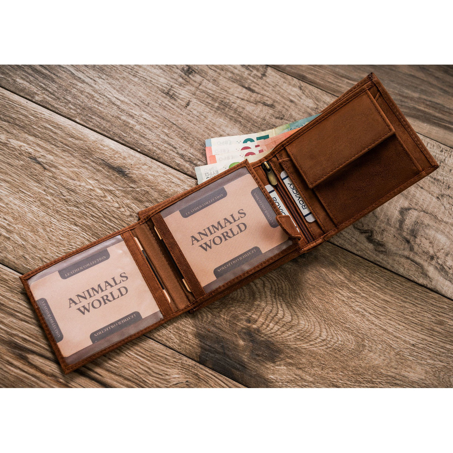 Duży portfel męski z nubukowej skóry naturalnej w brązowym kolorze - Always Wild