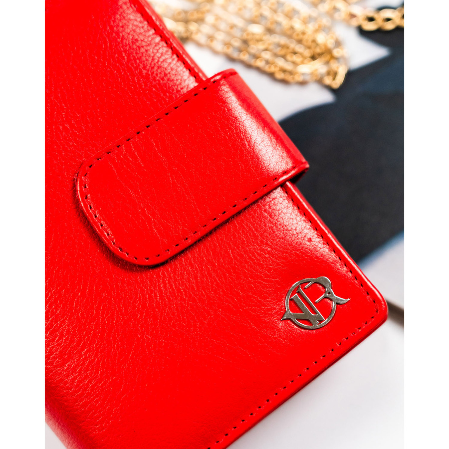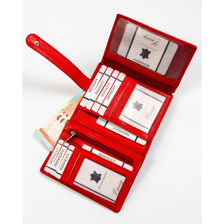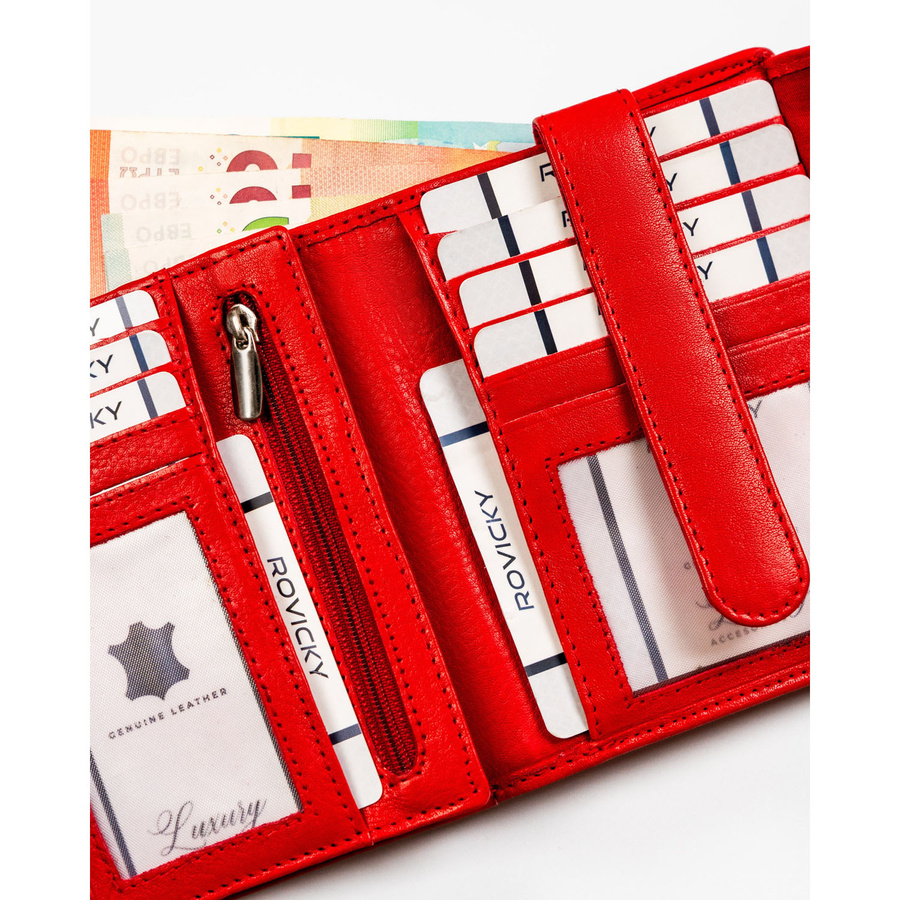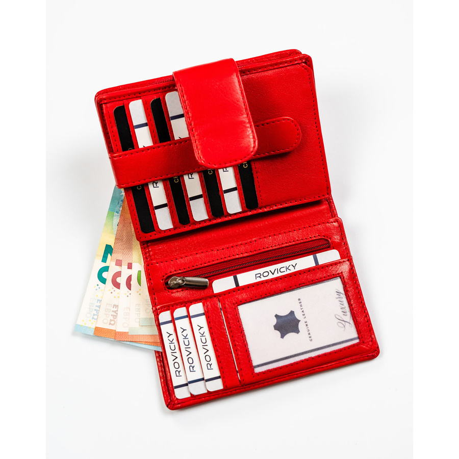 Zgrabny portfel damski na zatrzask wykonany ze skóry naturalnej w czerwonym kolorze - Rovicky
