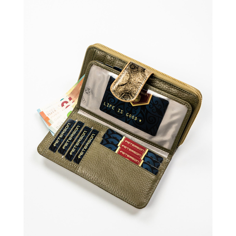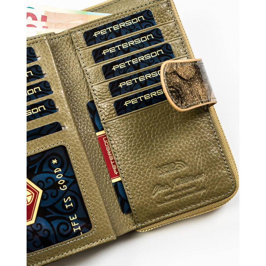 Portfel wyposażony w specjalną podszewkę z RFID BLOCKING SYSTEM (Radio-Frequency IDentification), która zabezpiecza karty zbliżeniowe, dokumenty biometryczne, legitymacje i karty komunikacji miejskiej przed nieautoryzowanym odczytem danych. Technologia uniemożliwia odczyt danych za pomocą specjalnych czytników wykorzystywanych do kradzieży danych.