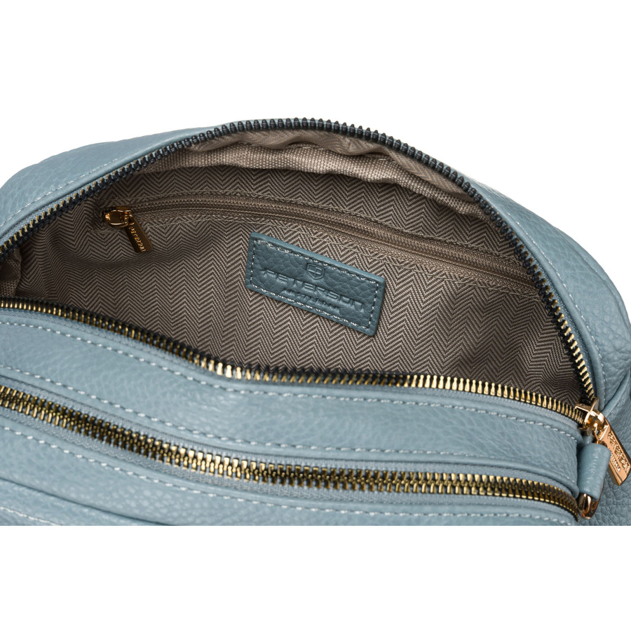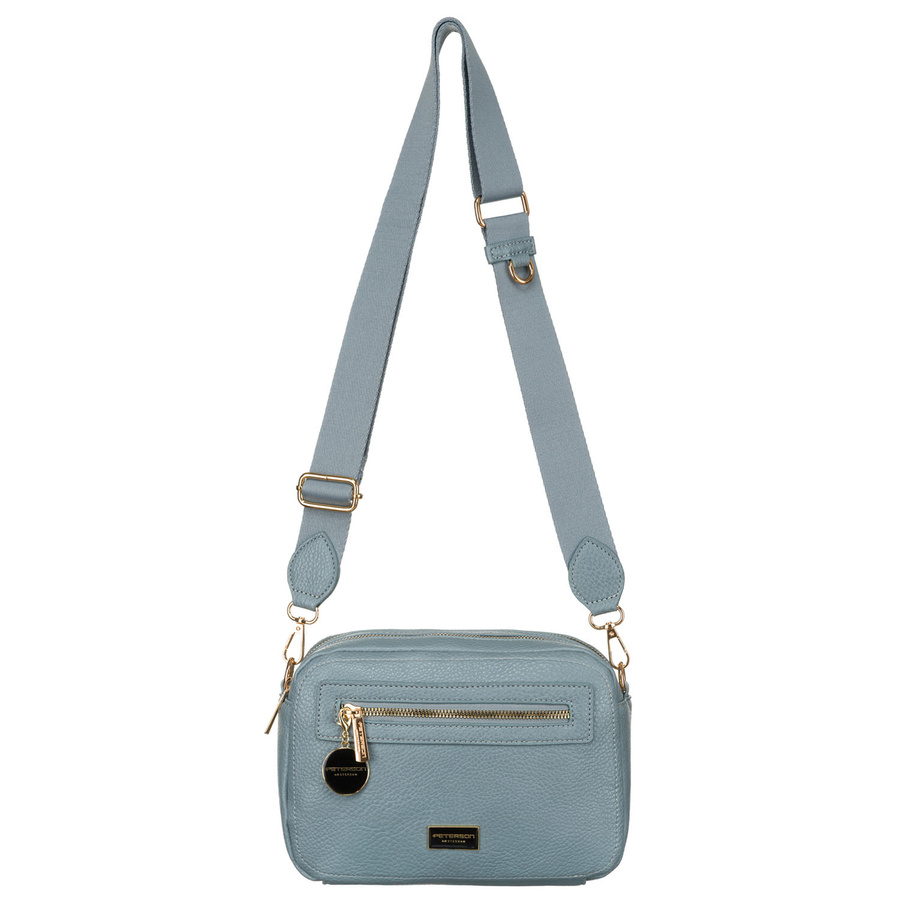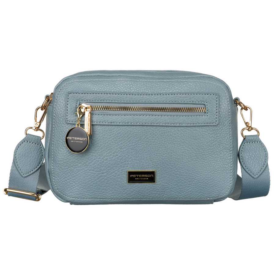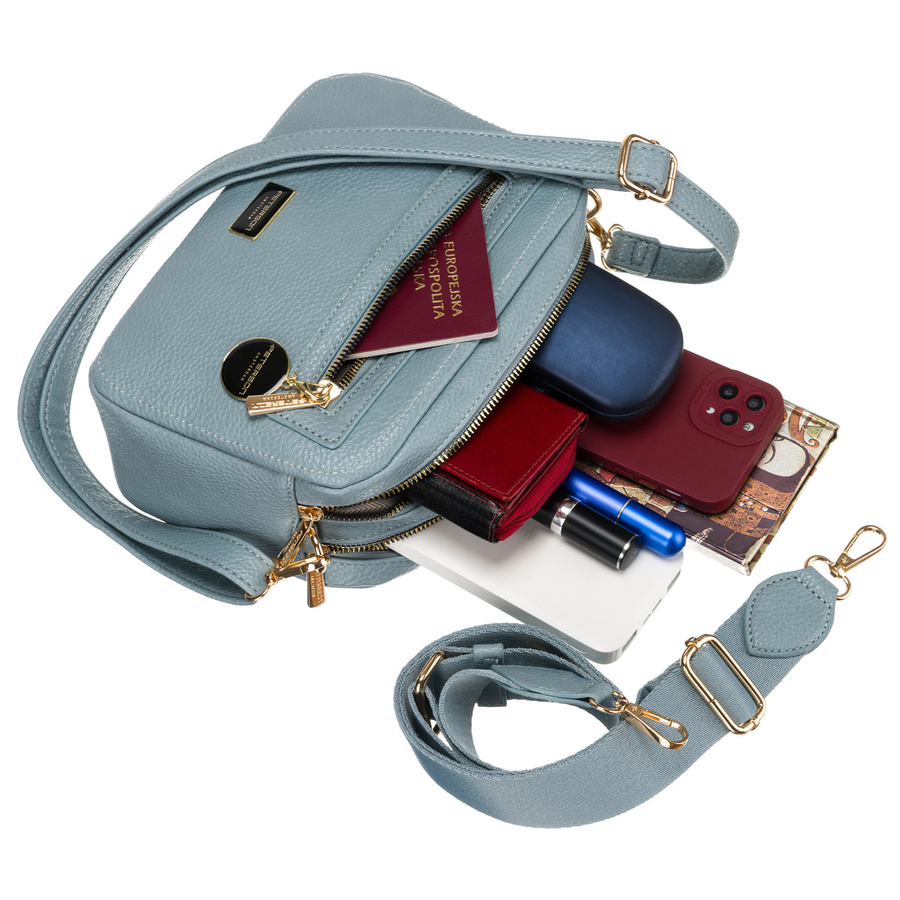 Modna niebieska listonoszka damska z dwoma paskami na ramię i brelokiem eko skóra Peterson