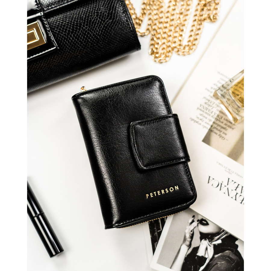 Elegancki, mały portfel damski ze skóry ekologicznej w czarnym kolorze - Peterson
