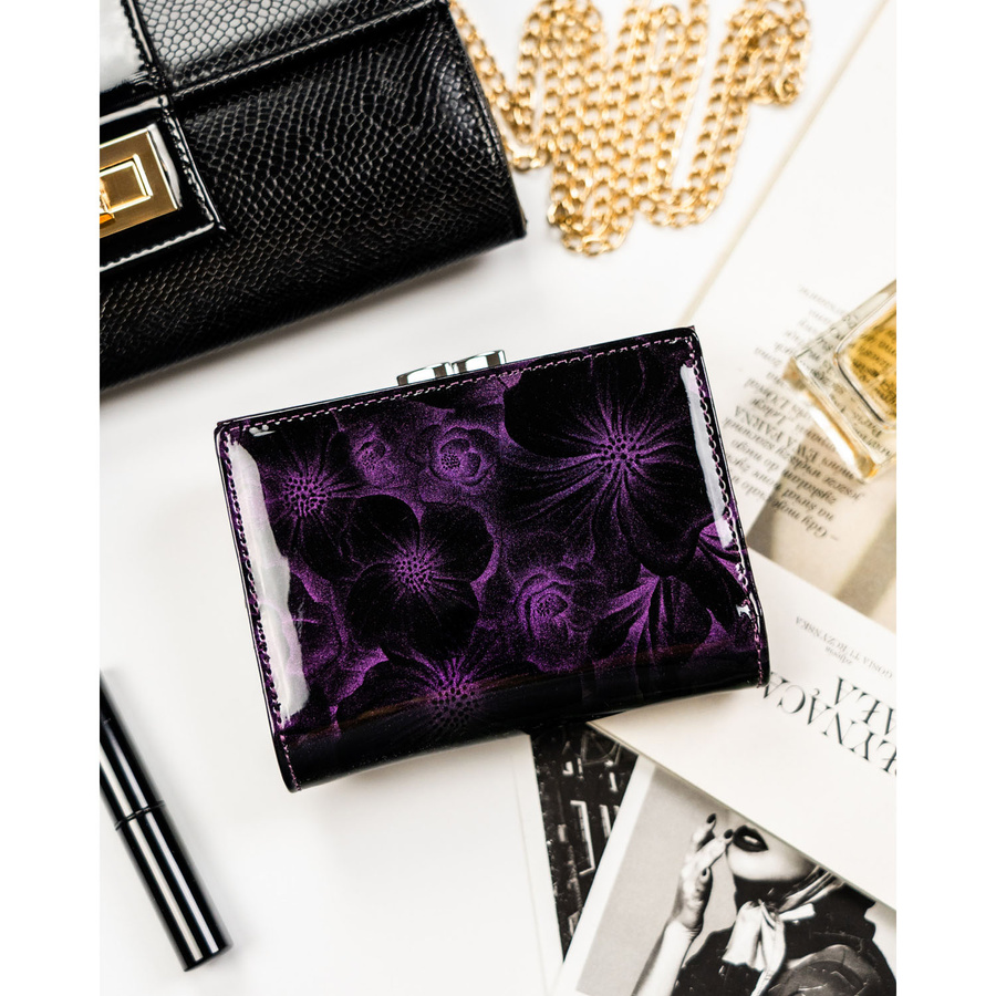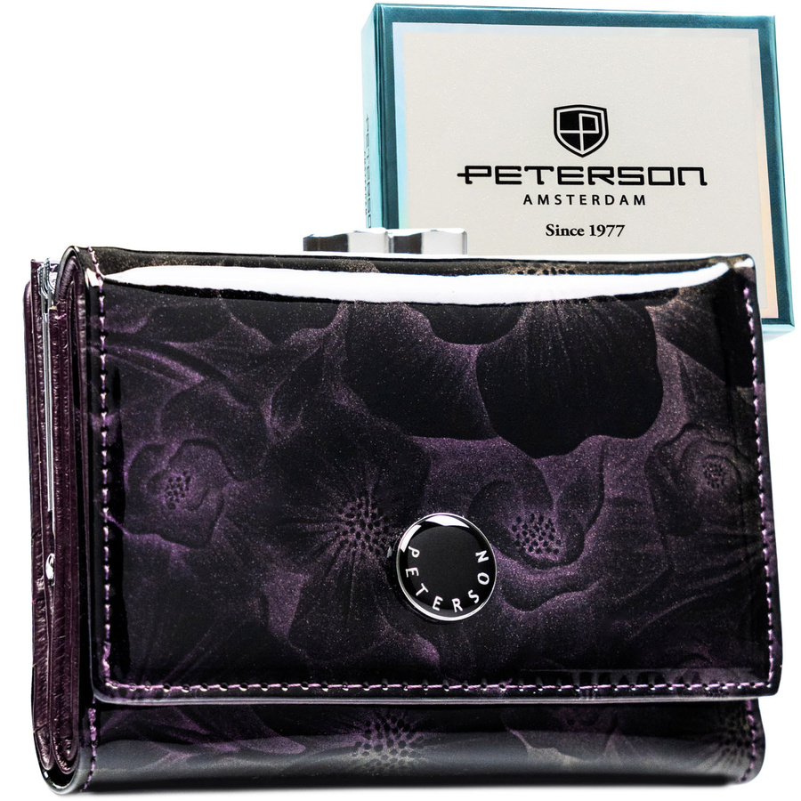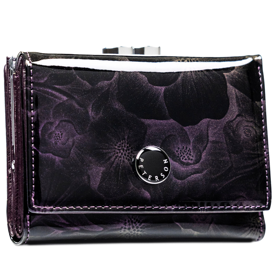 Fioletowy portfel damski z lakierowanej skóry naturalnej i ekologicznej - Peterson