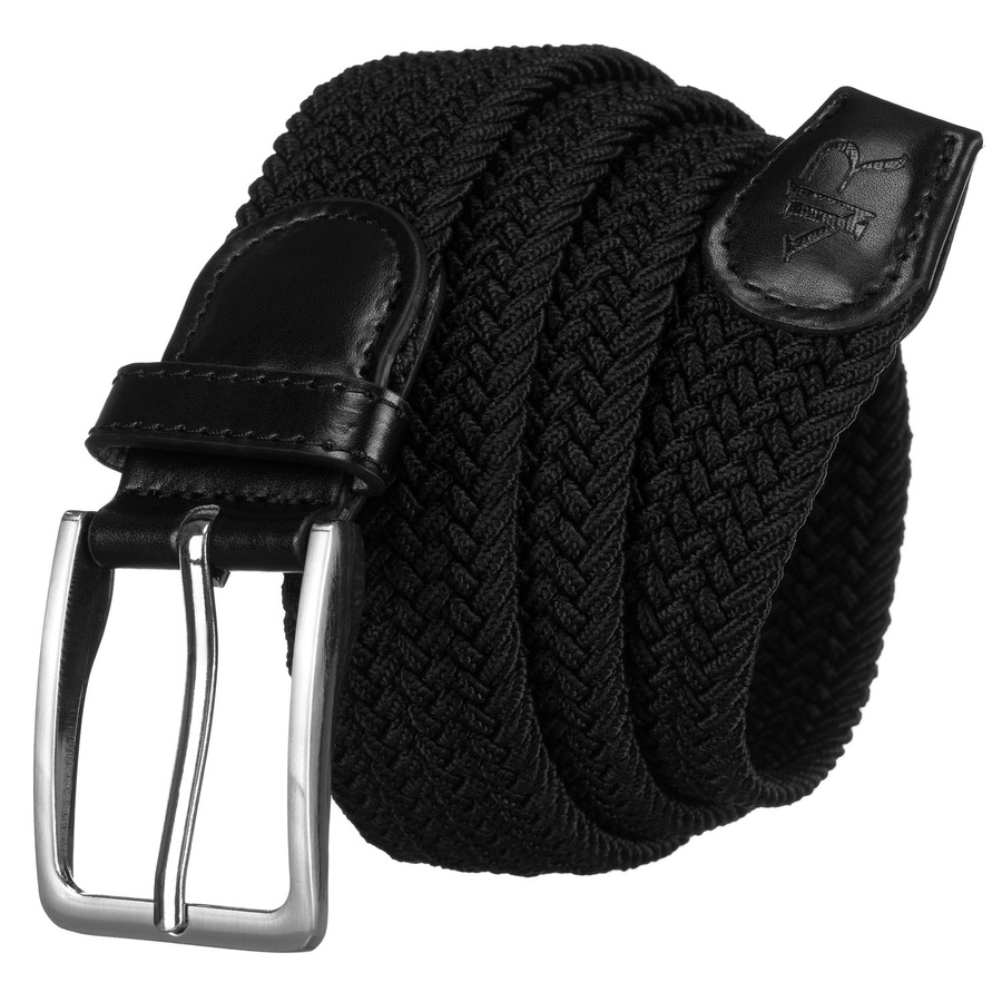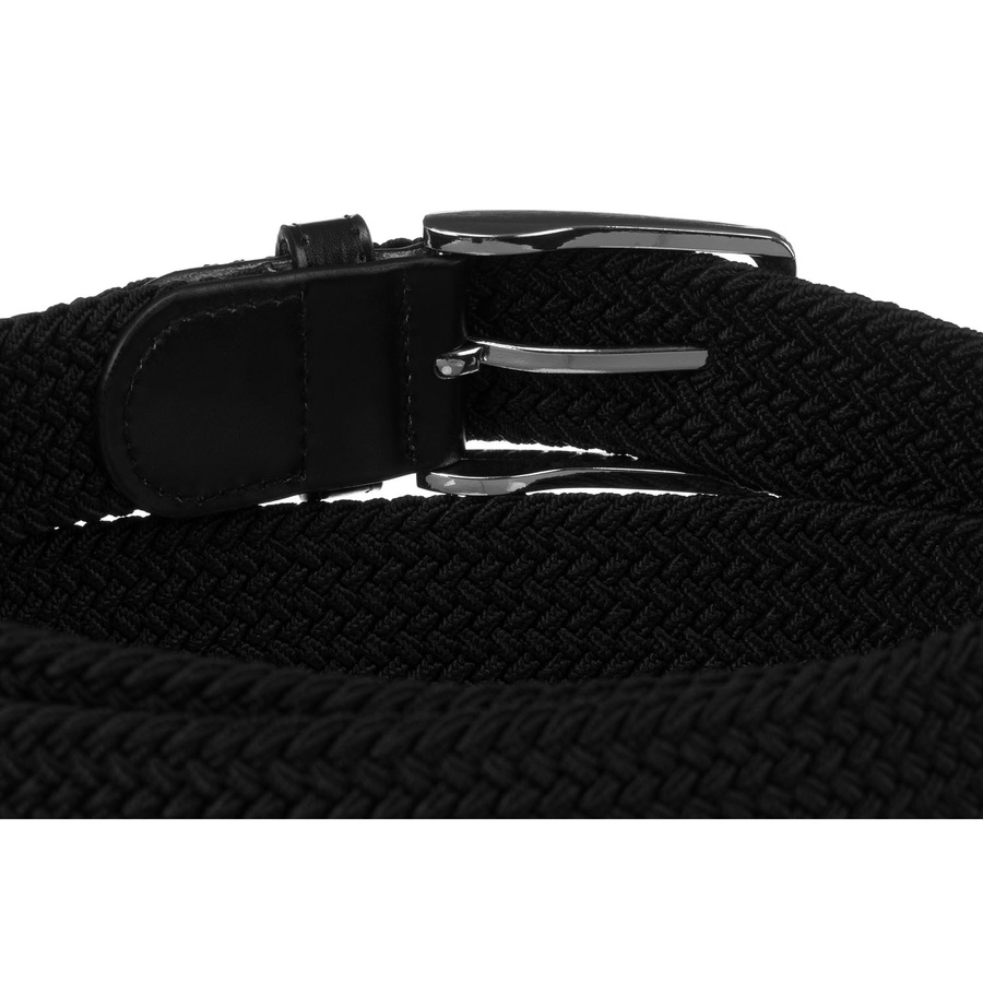 Pleciony, elastyczny pasek parciany w czarnym kolorze z tradycyjną klamrą - Rovicky