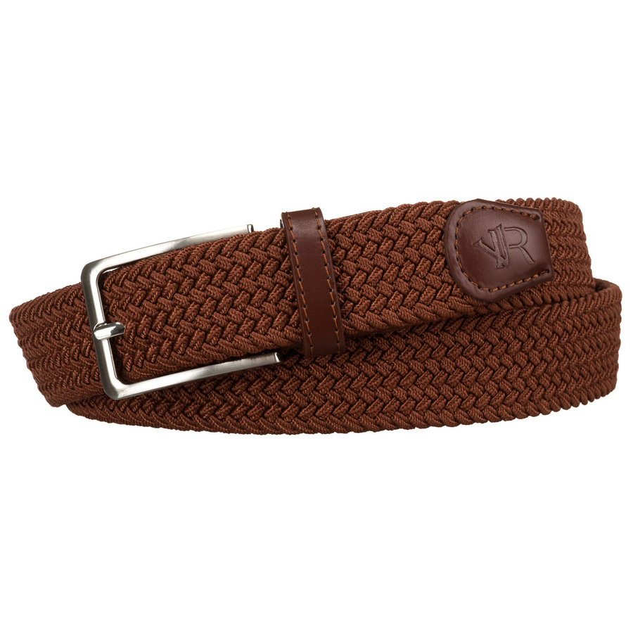 Jasnobrązowy, pleciony pasek parciany z tradycyjną, srebrną klamrą - Rovicky