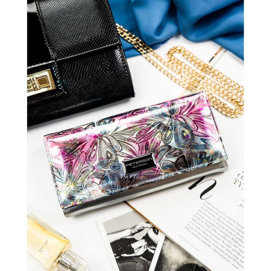 Duży, wielokolorowy portfel damski ze skóry ekologicznej i naturalnej z systemem RFID - Peterson