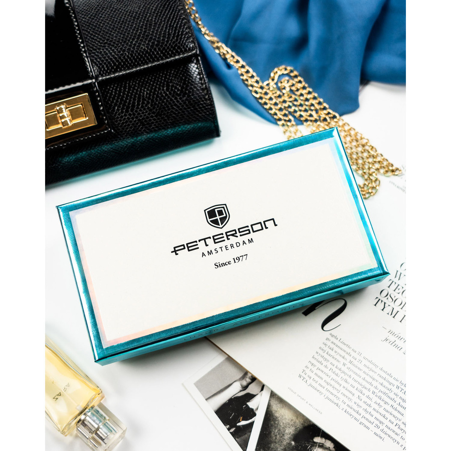 Elegancki, biały portfel damski ze skóry ekologicznej i naturalnej z systemem RFID - Peterson