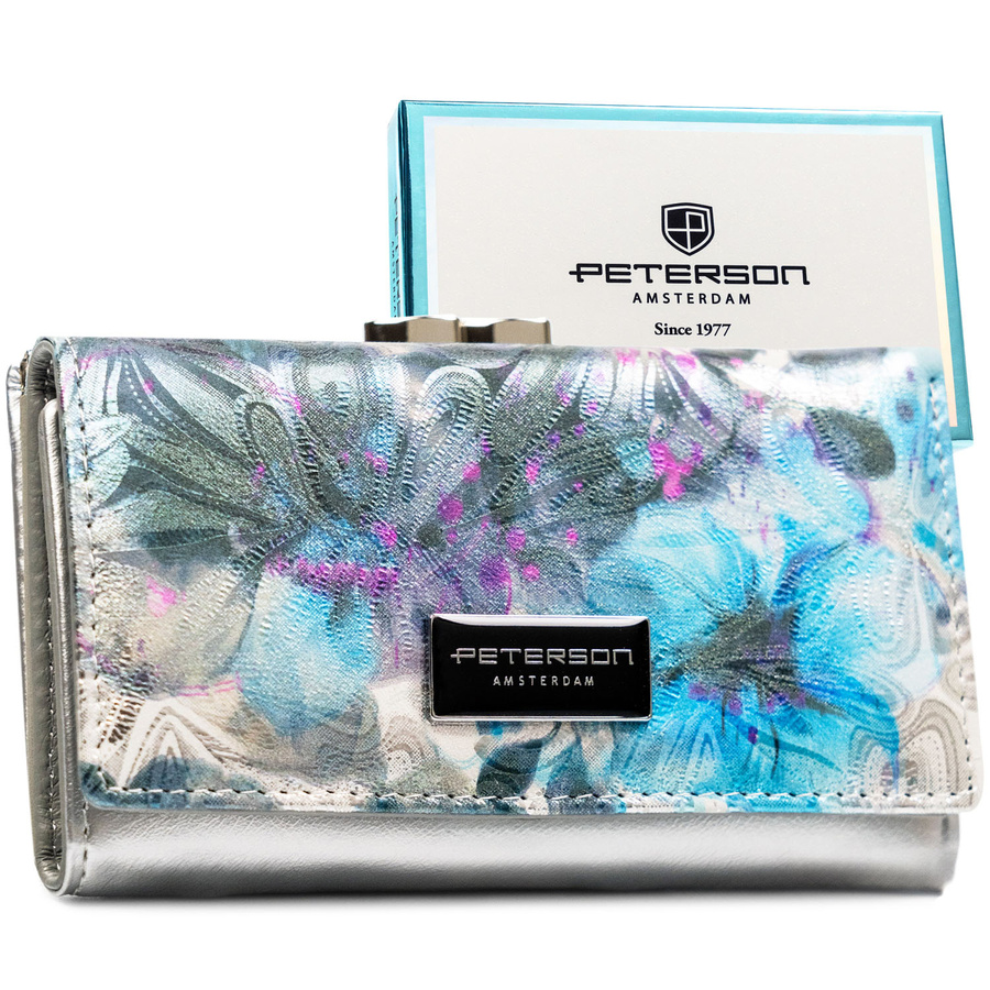 Wielokolorowy portfel ze skóry ekologicznej i naturalnej z systemem RFID - Peterson