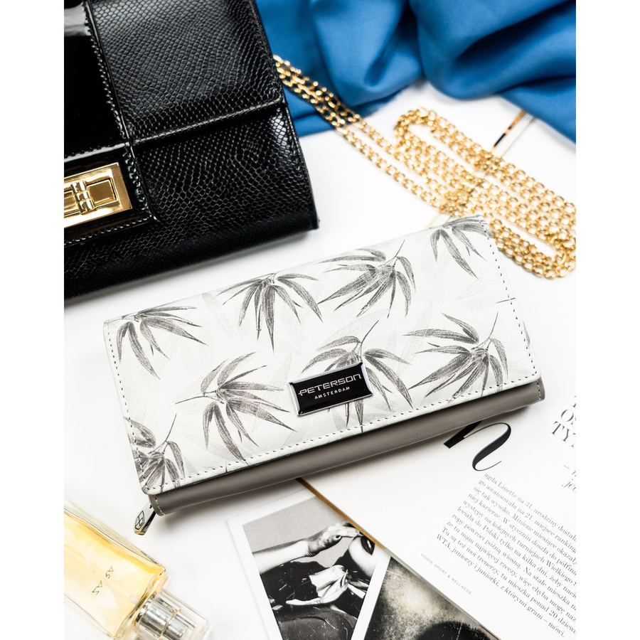 Biały, duży portfel damski z systemem RFID zamykany na zatrzask - Peterson