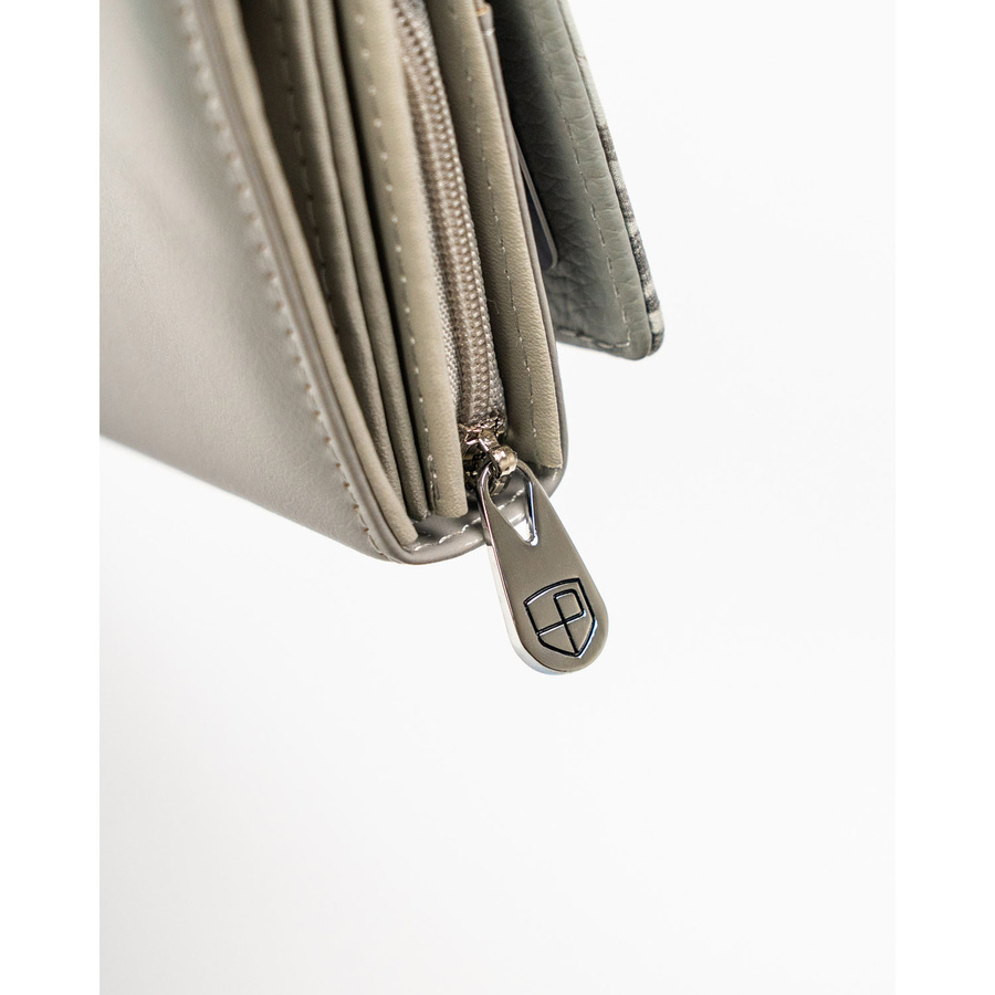 - Dodatkowym atutem jest praktyczna, podwójna kieszeń na bilon, zamykana na suwak. Rozdzielona komora pozwala zachować porządek i zapewnia szybki dostęp do drobnych, a solidne zapięcie chroni monety przed wysypaniem.