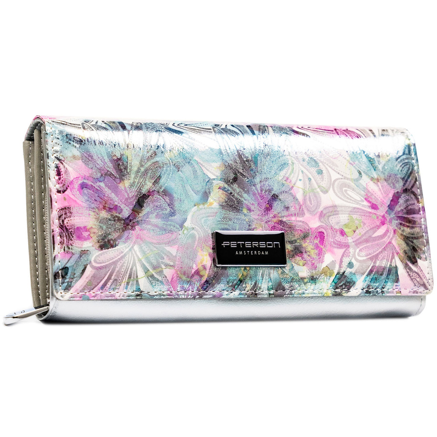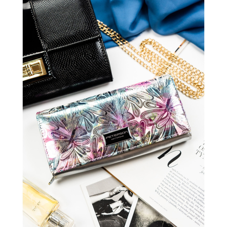 Duży portfel damski z systemem RFID odszyty z wielokolorowej skóry naturalnej i ekologicznej - Peterson