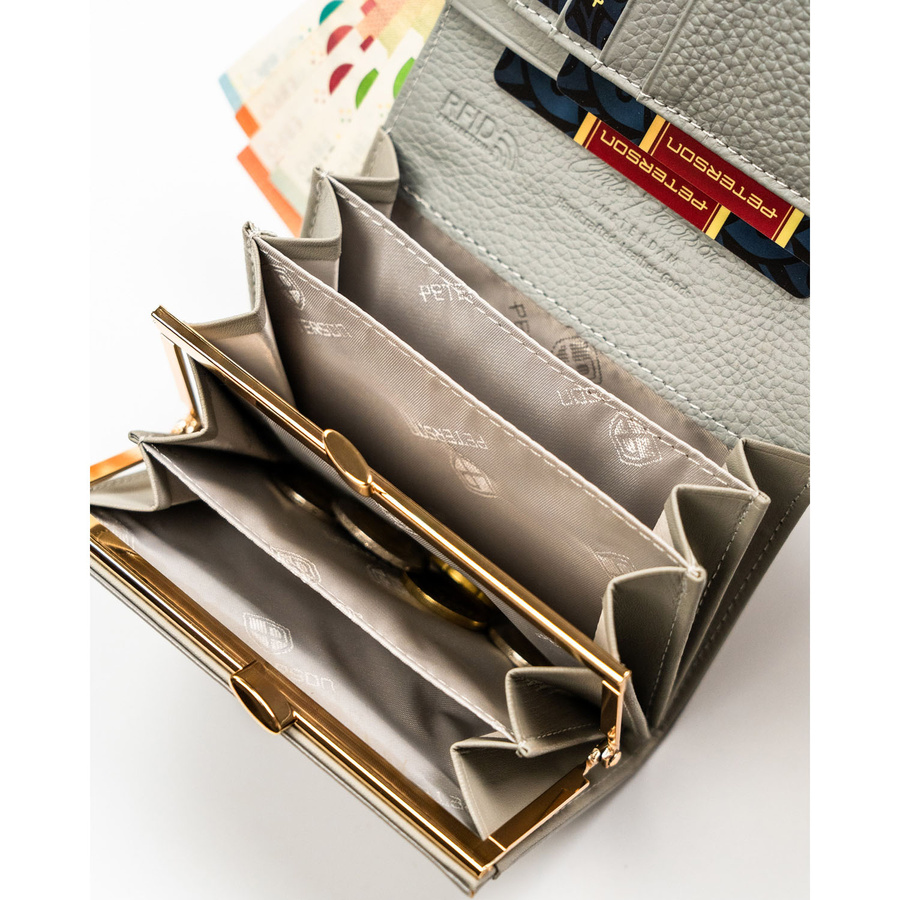 Czarny portfel damski ze skóry naturalnej ozdobiony kwiatowym wzorem - Peterson