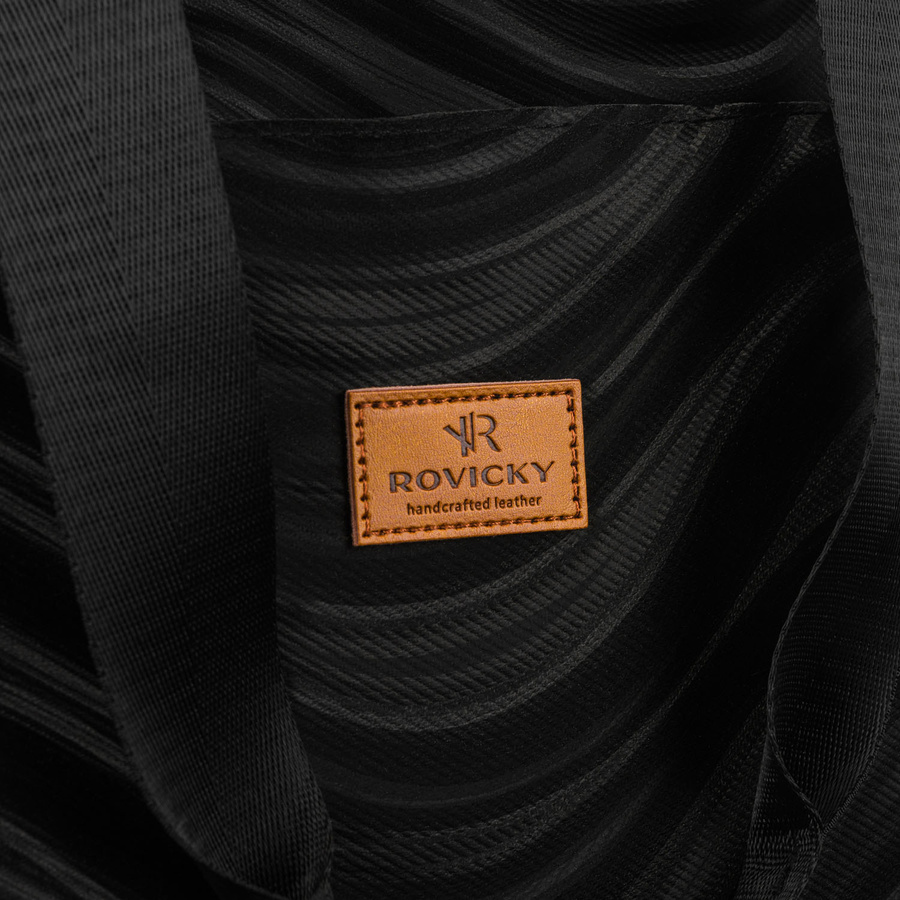 Duży shopper damski z poliestru w czarnym kolorze pokryty falistym wzorem - Rovicky