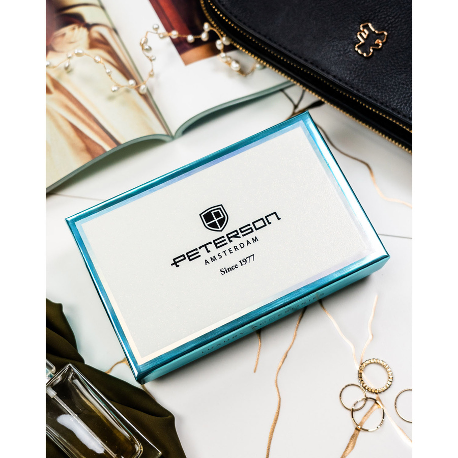 Portfel damski ze skóry naturalnej i ekologicznej w brązowym kolorze, wyposażony w system RFID - Peterson