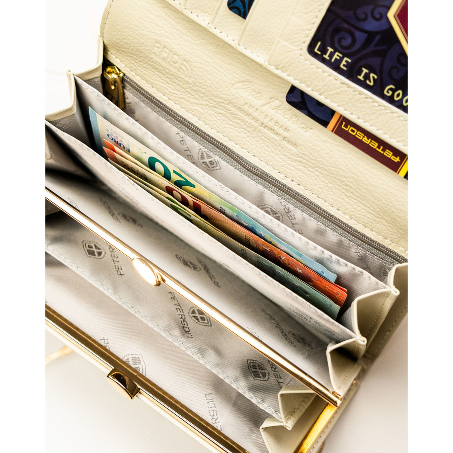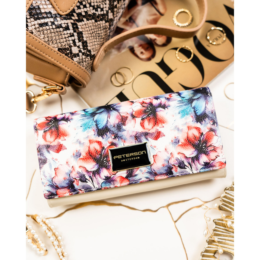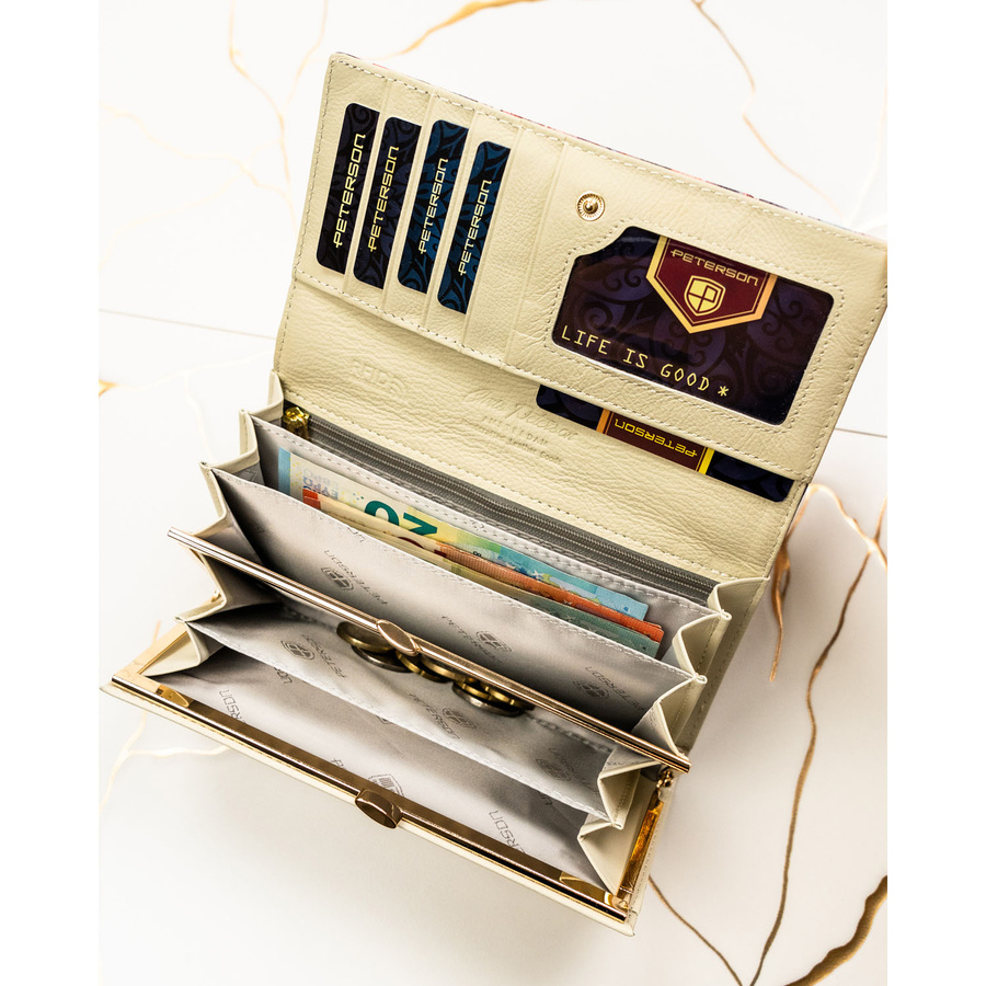 Duży portfel damski w kwiaty wykonany ze skóry naturalnej i ekologicznej z systemem RFID - Peterson
