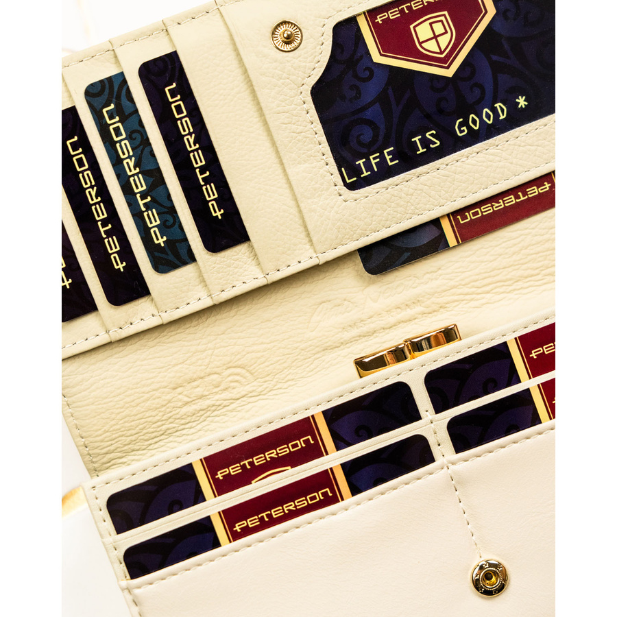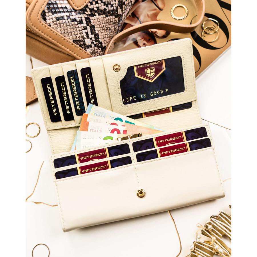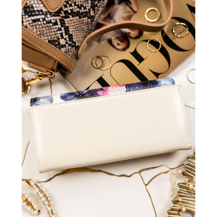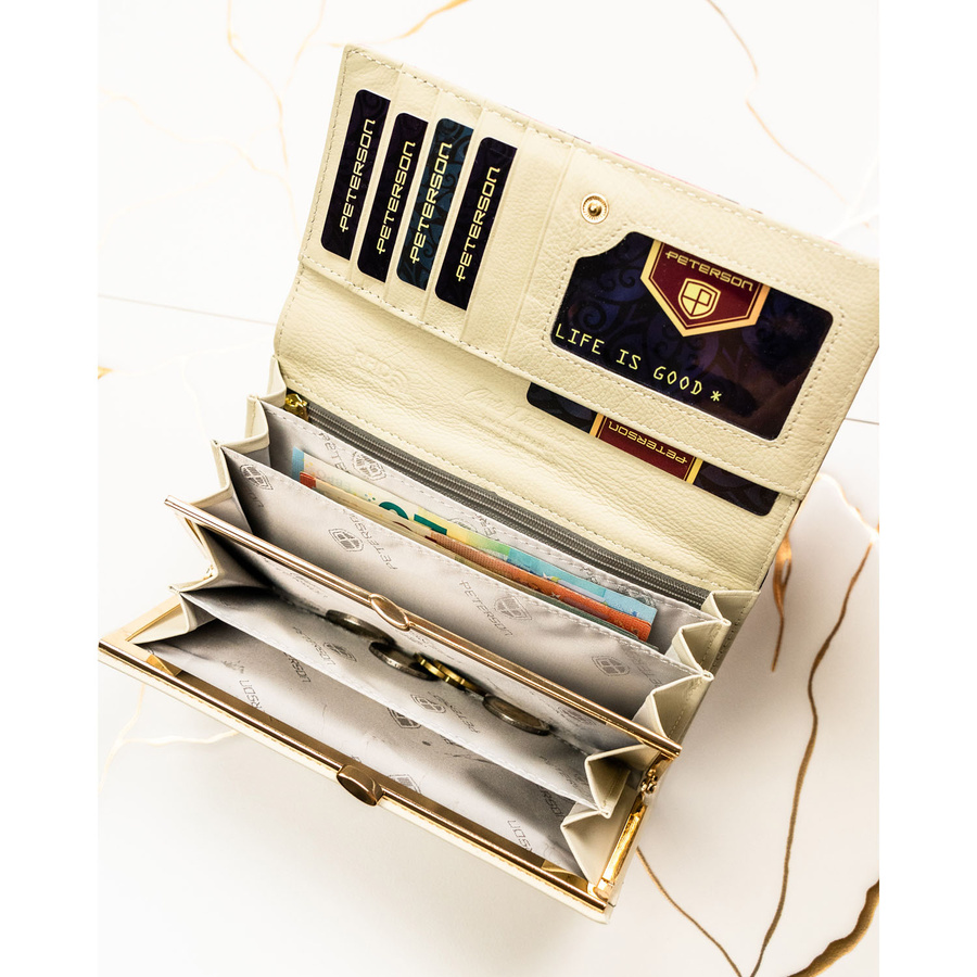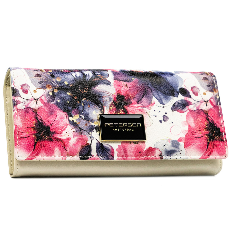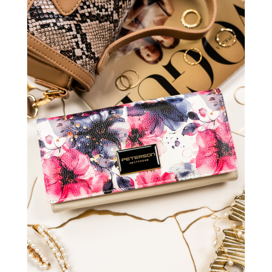 Duży portfel damski w kwiaty wykonany ze skóry naturalnej i ekologicznej z systemem RFID - Peterson