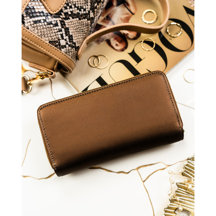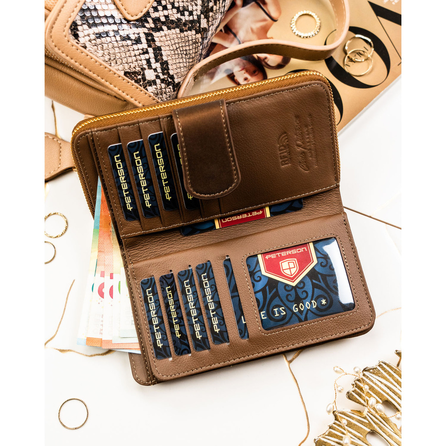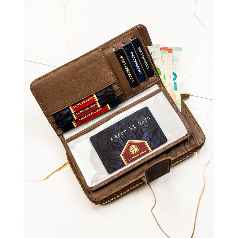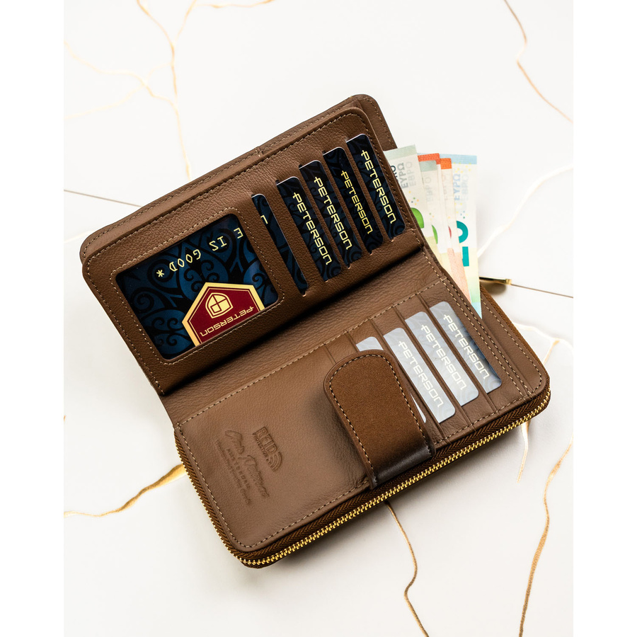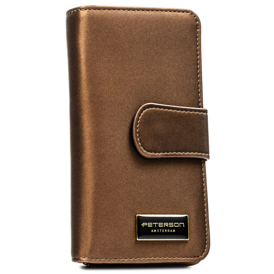 Pionowy portfel damski ze skóry naturalnej i ekologicznej w brązowym kolorze - Peterson