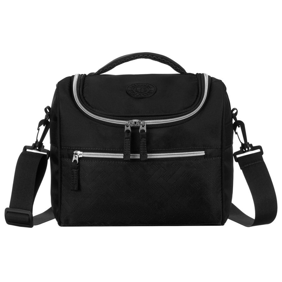 Czarna, praktyczna kosmetyczka podróżna z tkaniny syntetycznej z dopasowanym paskiem - Peterson