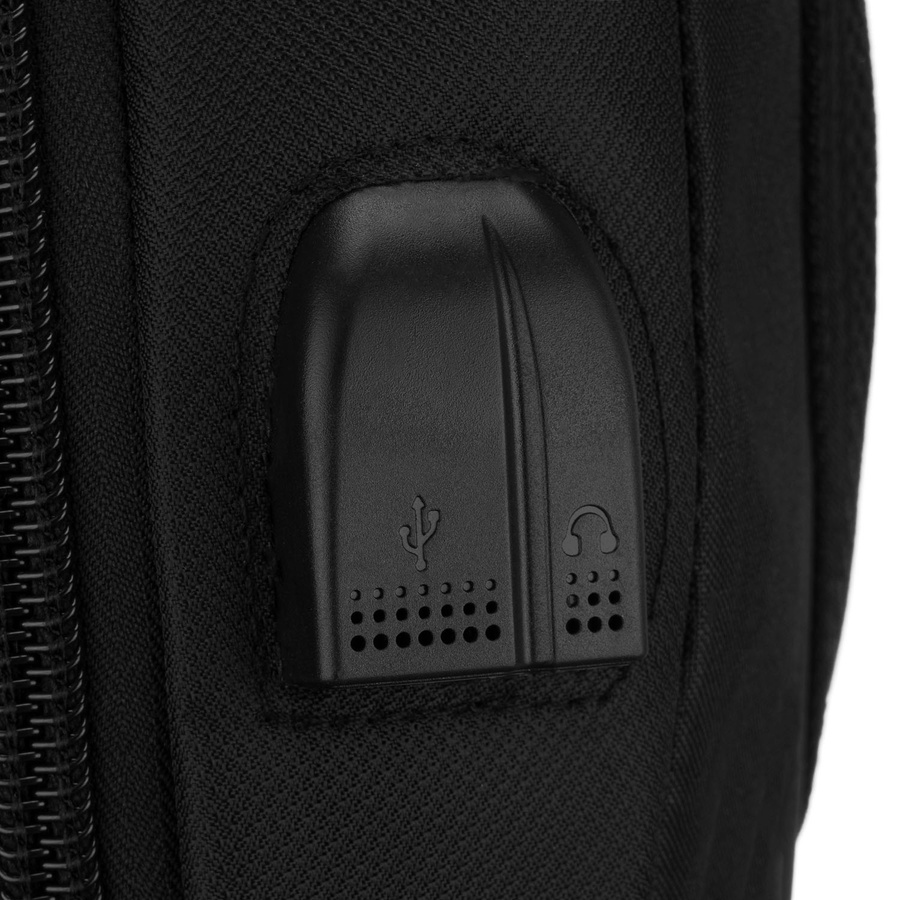 - Podłącz powerbank od środka i wygodnie ładuj telefon w trakcie chodzenia lub słuchaj muzyki bez wyjmowania urządzenia z plecaka.