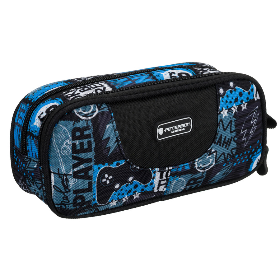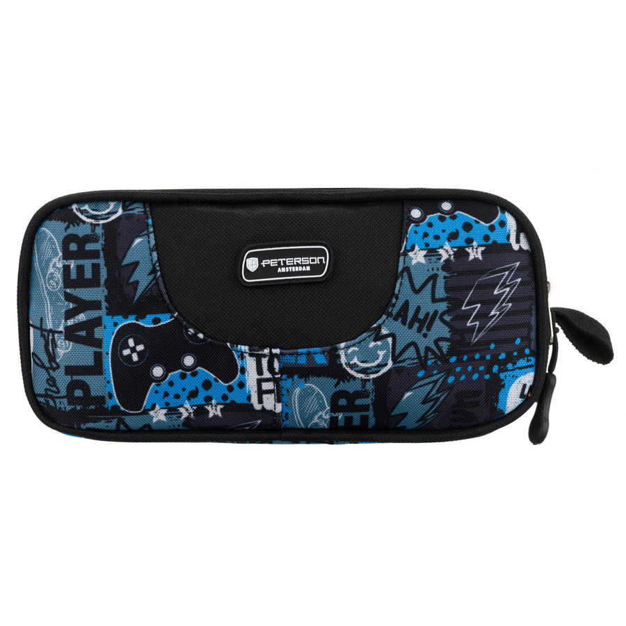 Szkolny piórnik z poliestru zapinany suwakami, pokryty gamingowym wzorem - Peterson