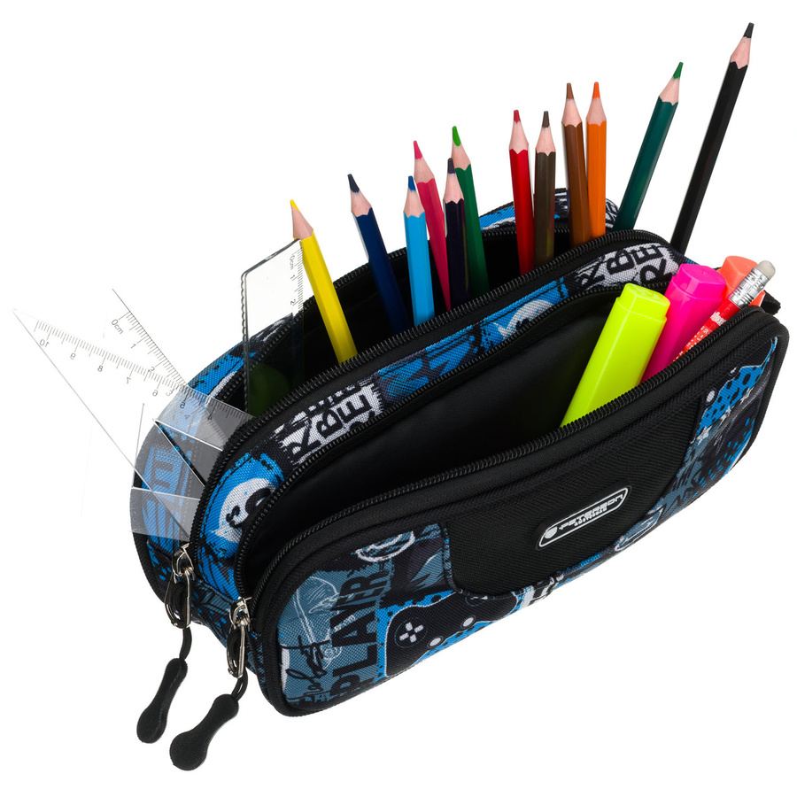 - Wygodne uchwyty suwaków – komfortowe w użyciu, nawet gdy piórnik jest wypchany po brzegi.