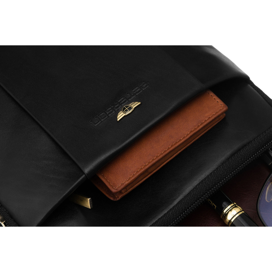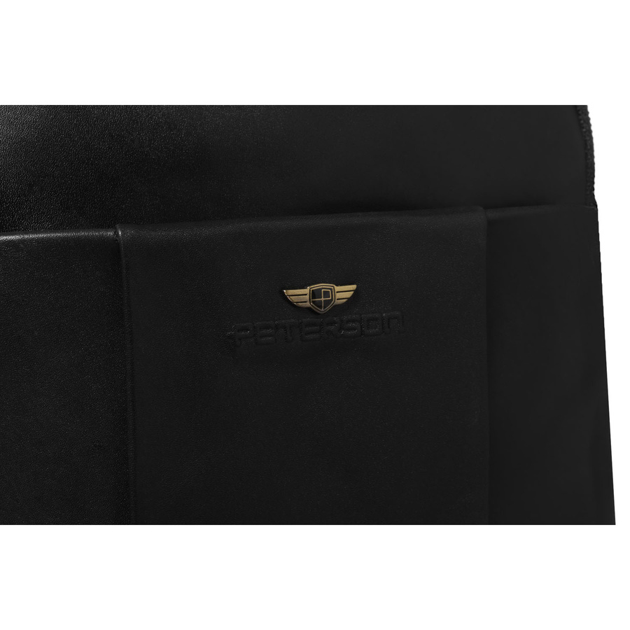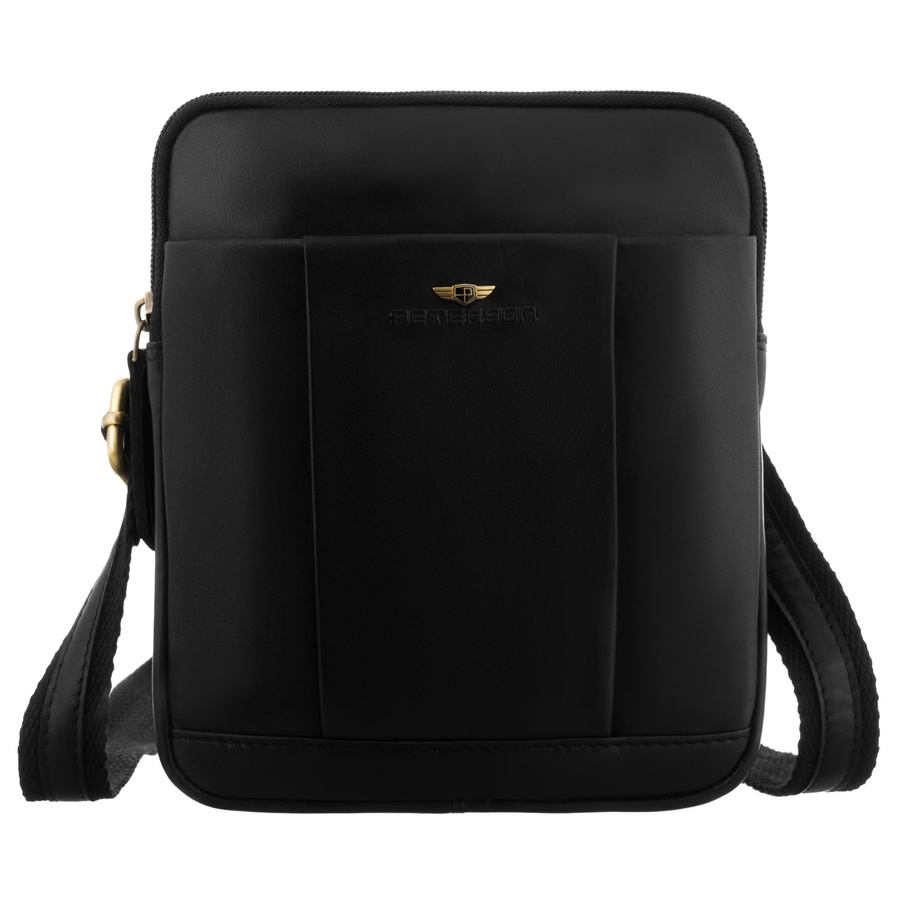 Dwukomorowa, czarna listonoszka męska ze skóry naturalnej zawieszona na regulowanym pasku - Peterson