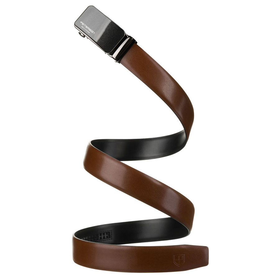 Skórzany pasek męski w brązowym kolorze z automatyczną, srebrną klamrą - Peterson