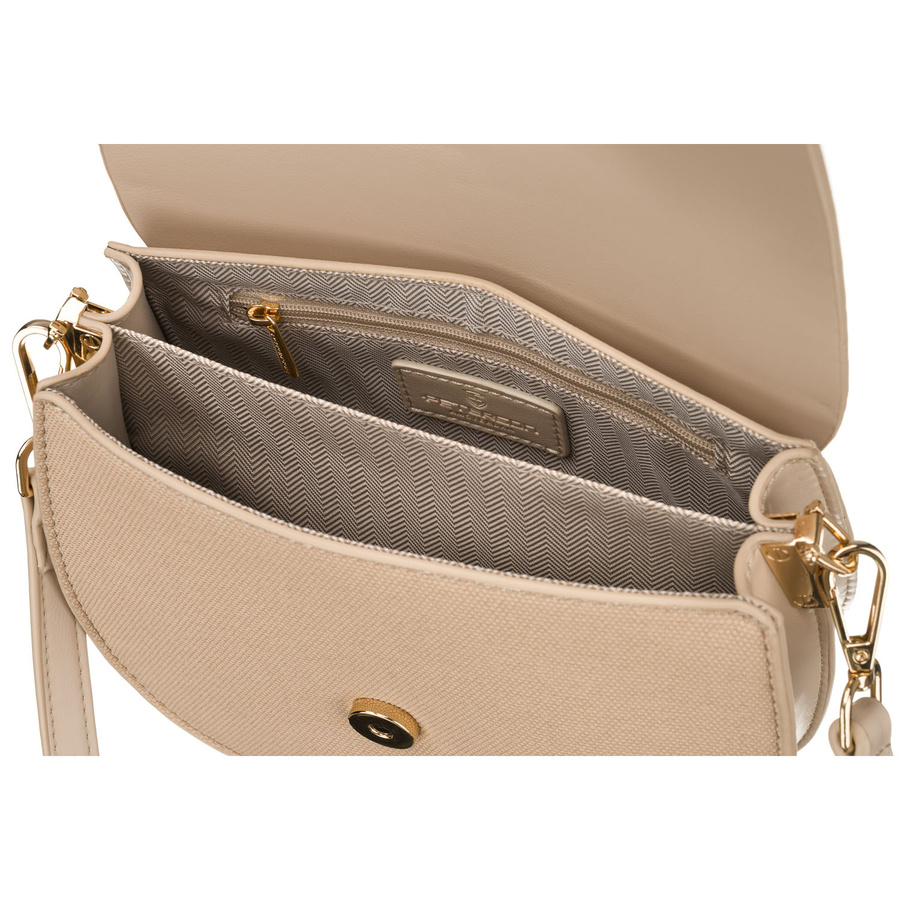 Beżowa listonoszka damska w kształcie podkówki zamykana klipsem magnetycznym - Peterson