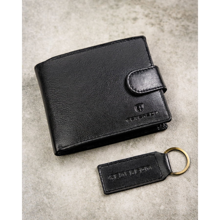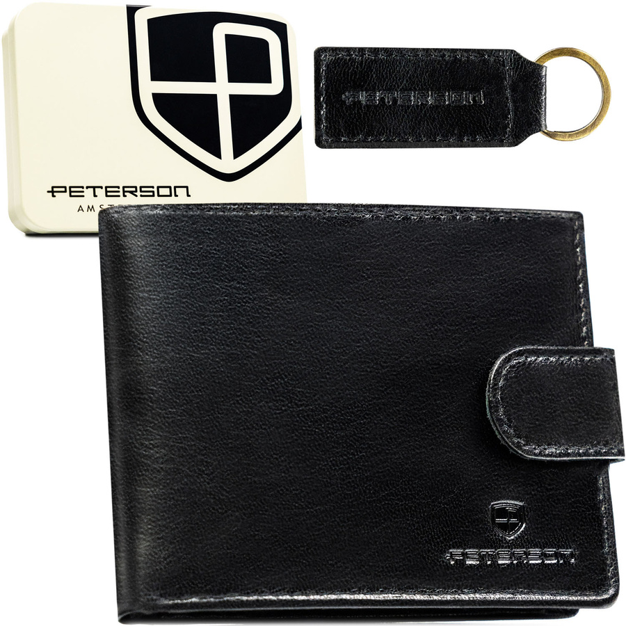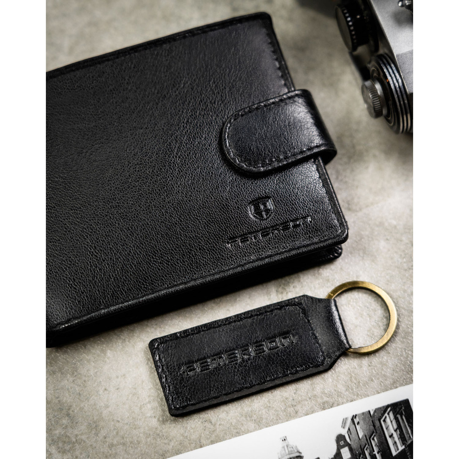 Zestaw prezentowy: czarny, skórzany portfel męski i brelok - Peterson