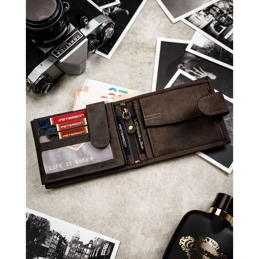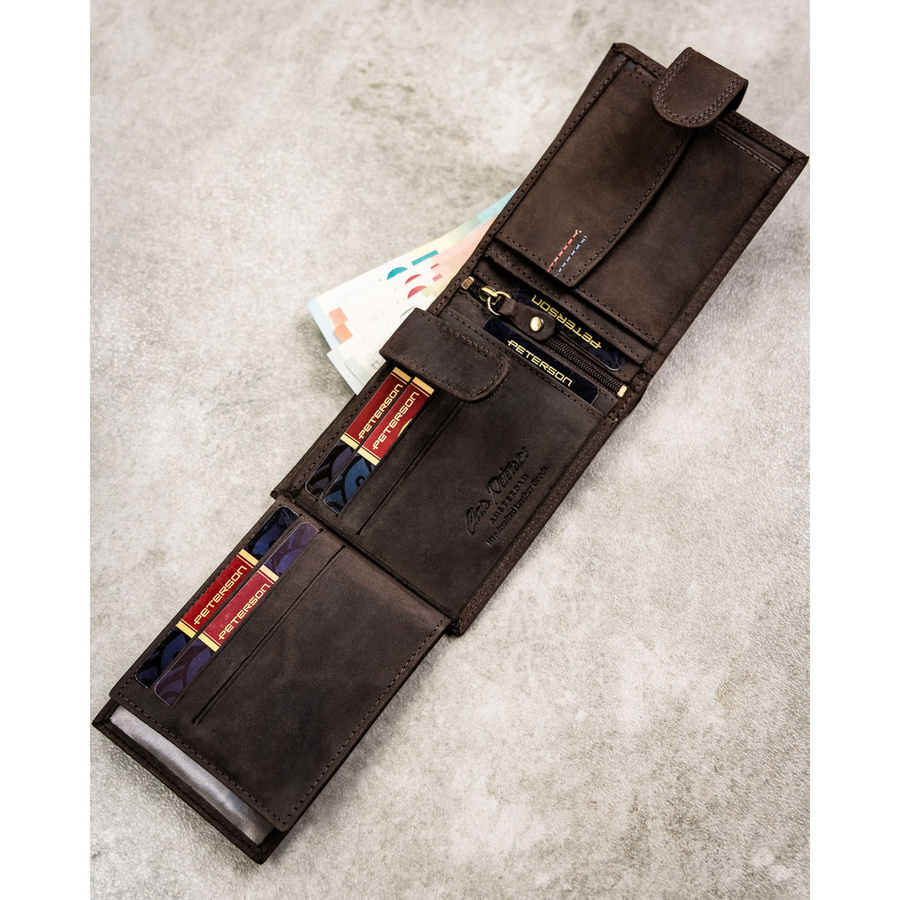 - Wysokiej jakości portfel męski skórzany od renomowanego producenta PETERSON.