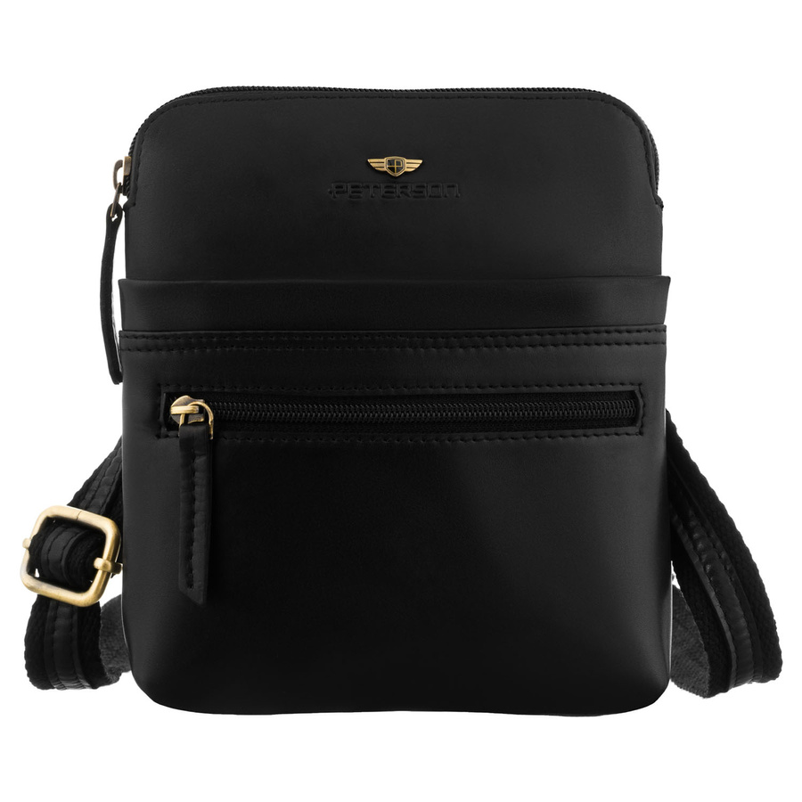 Mała, czarna, skórzana listonoszka męska zamykana suwakiem - Peterson