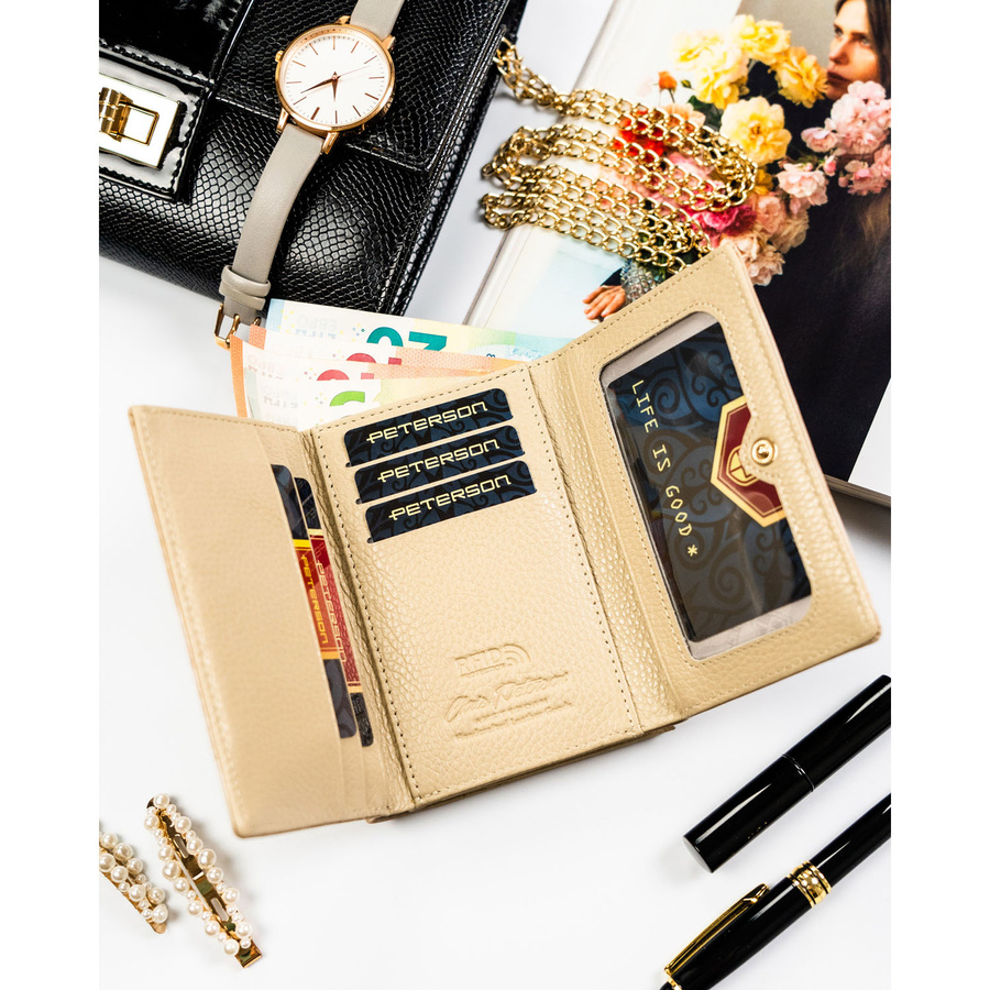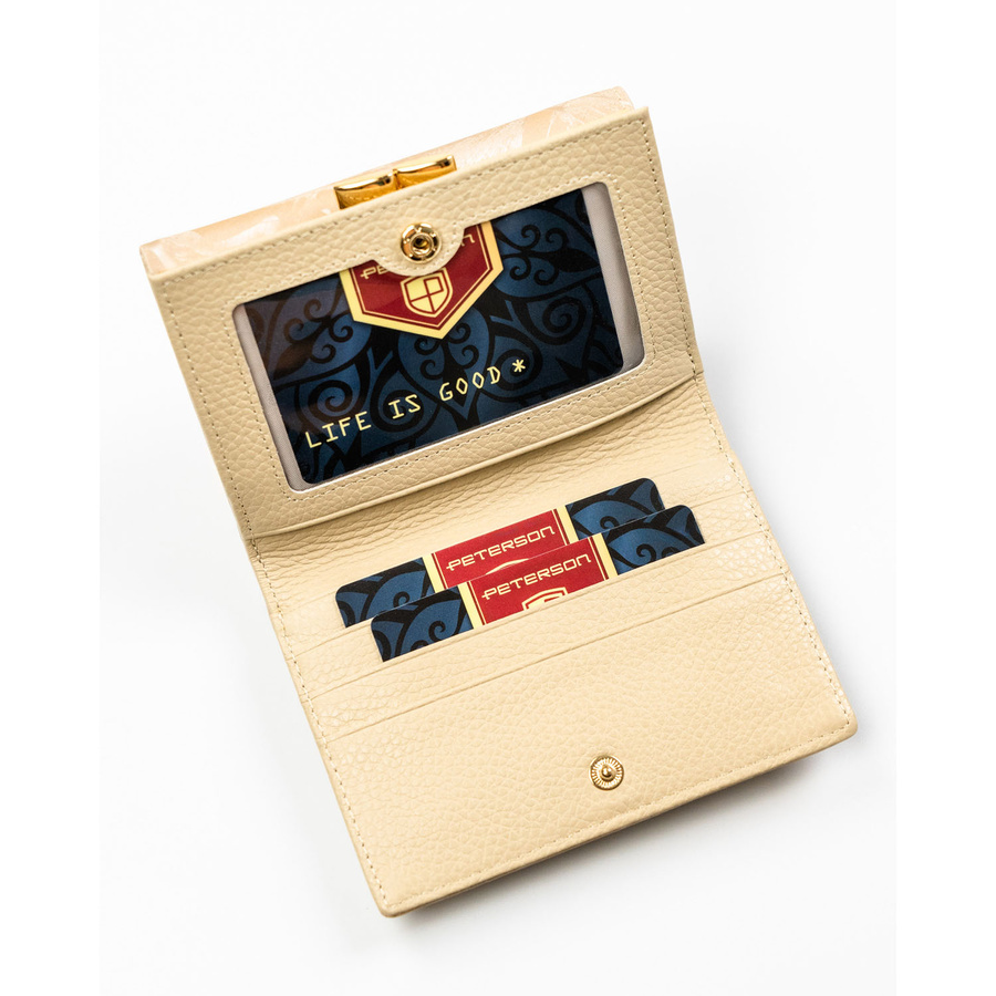 Beżowy portfel damski ze skóry naturalnej i ekologicznej pokryty roślinnym wzorem - Peterson