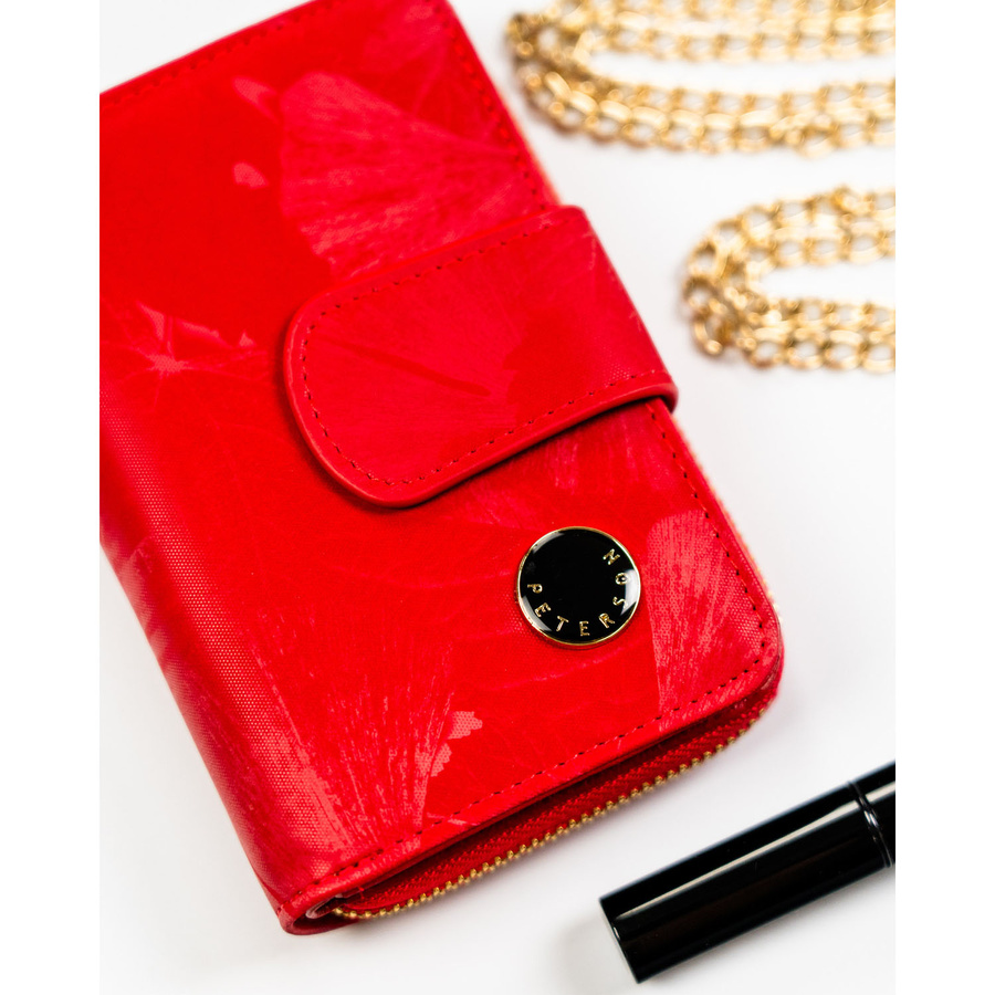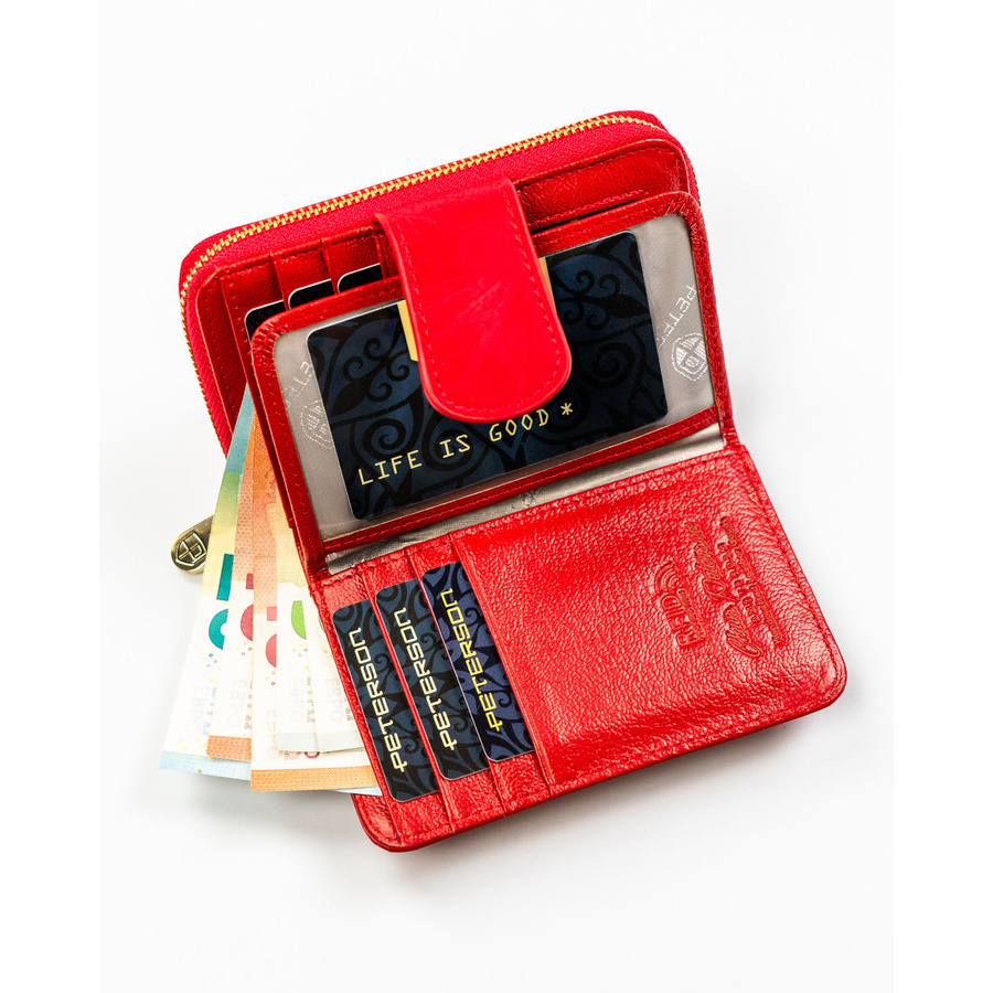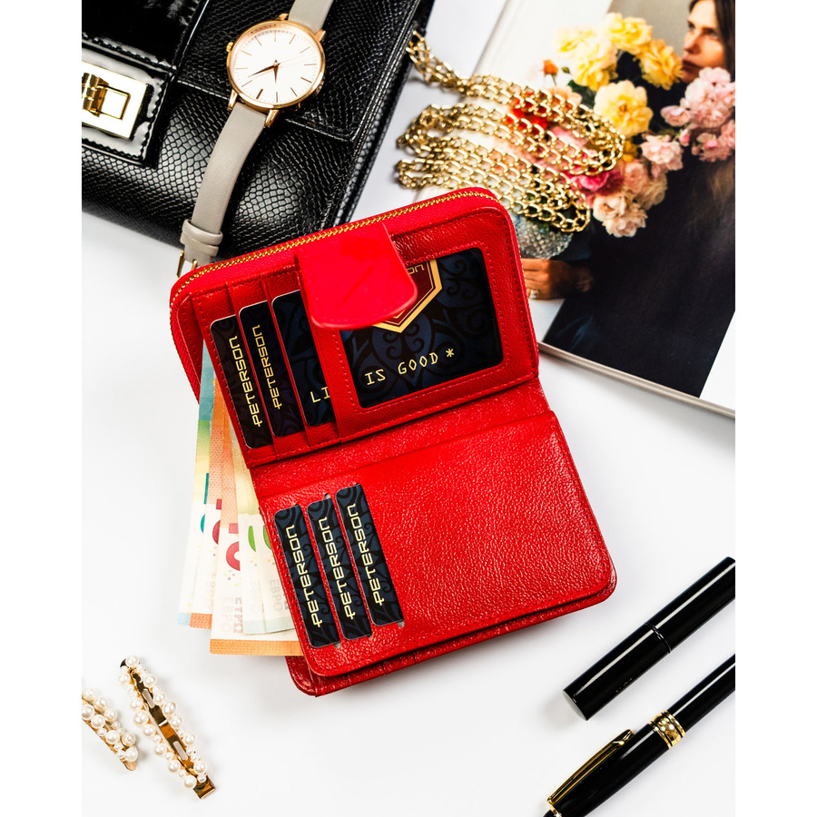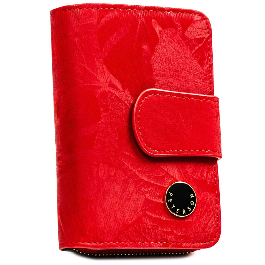 Czerwony portfel wykonany ze skóry naturalnej i ekologicznej zamykany na suwak i zatrzask - Peterson