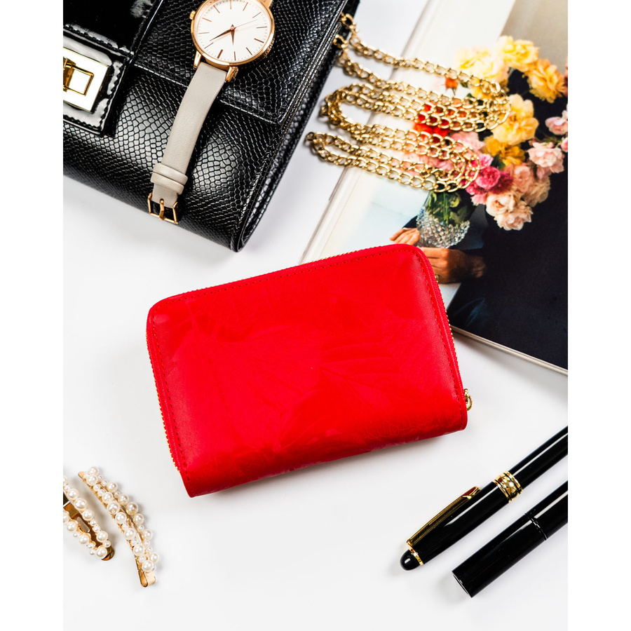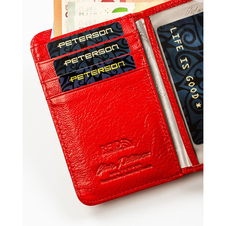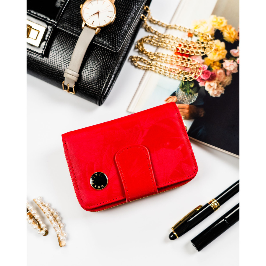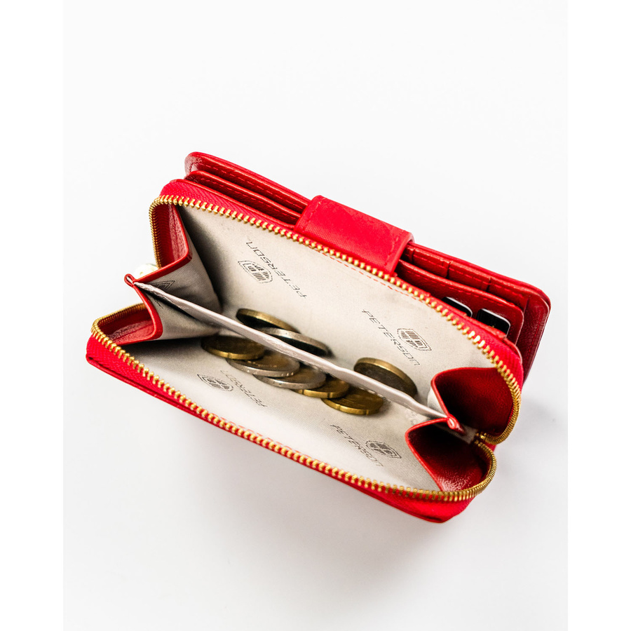 Czerwony portfel wykonany ze skóry naturalnej i ekologicznej zamykany na suwak i zatrzask - Peterson