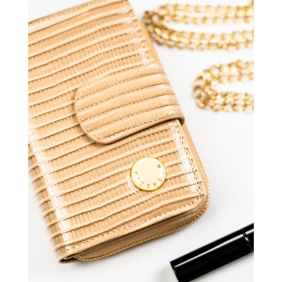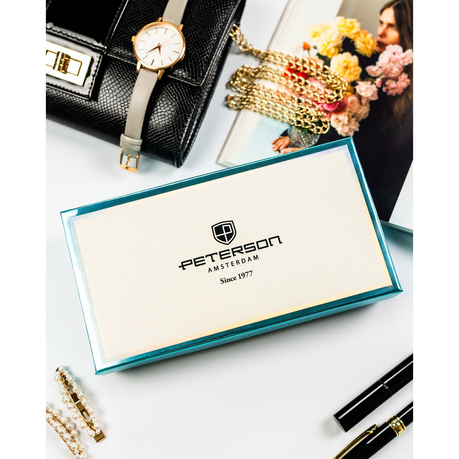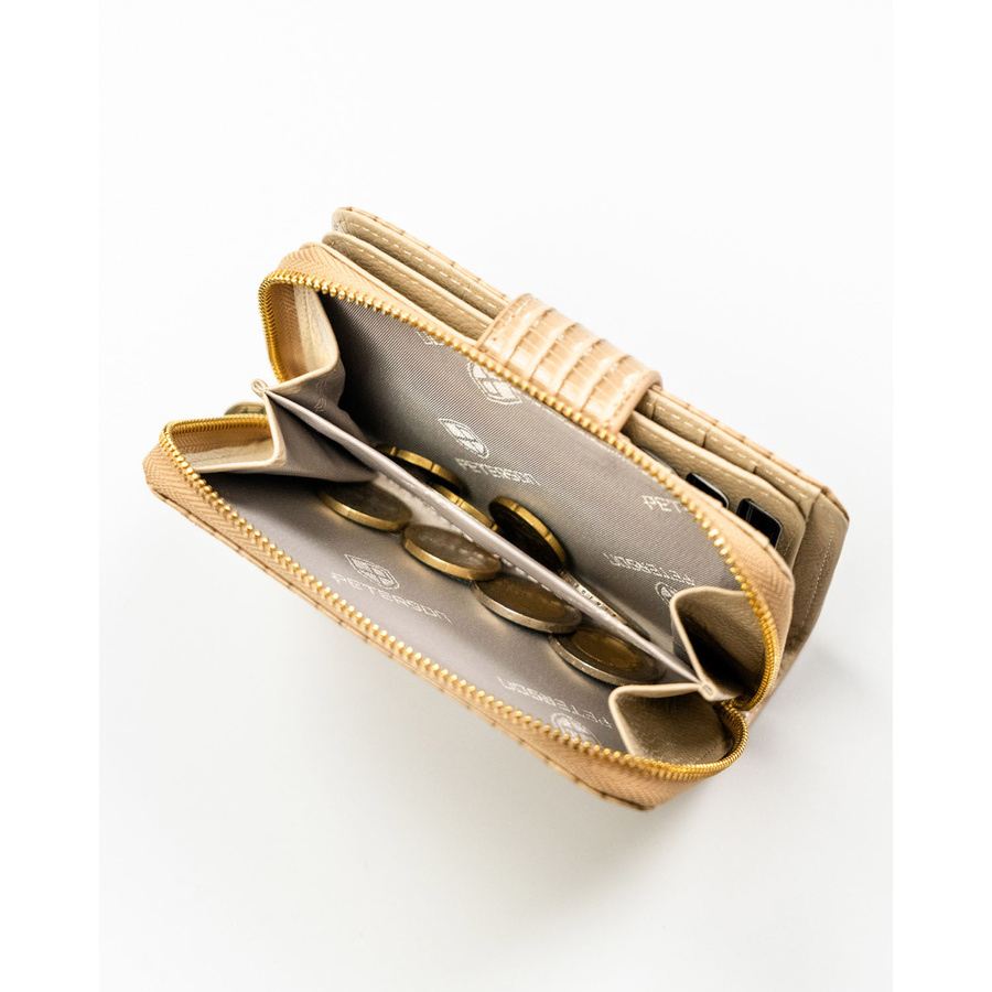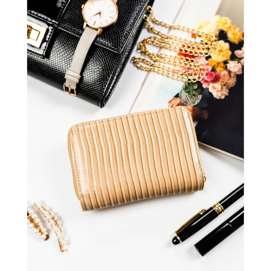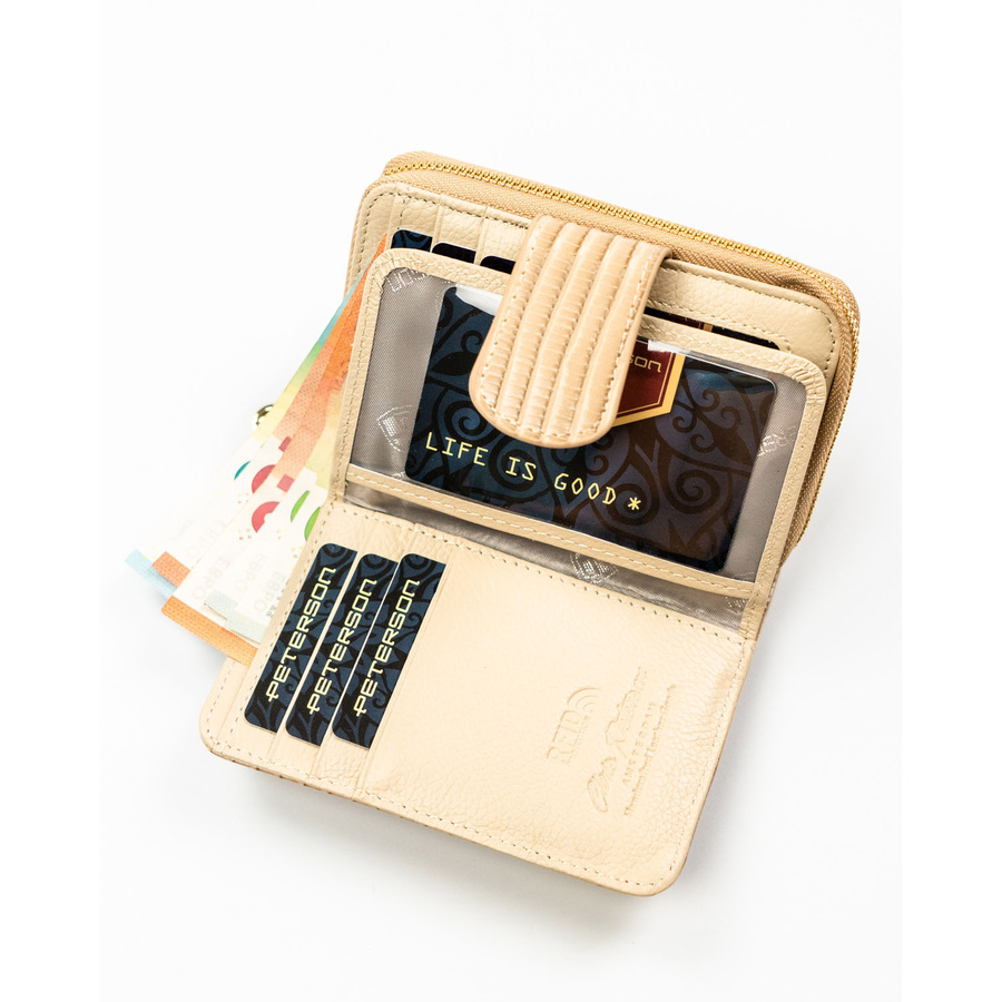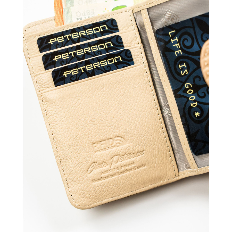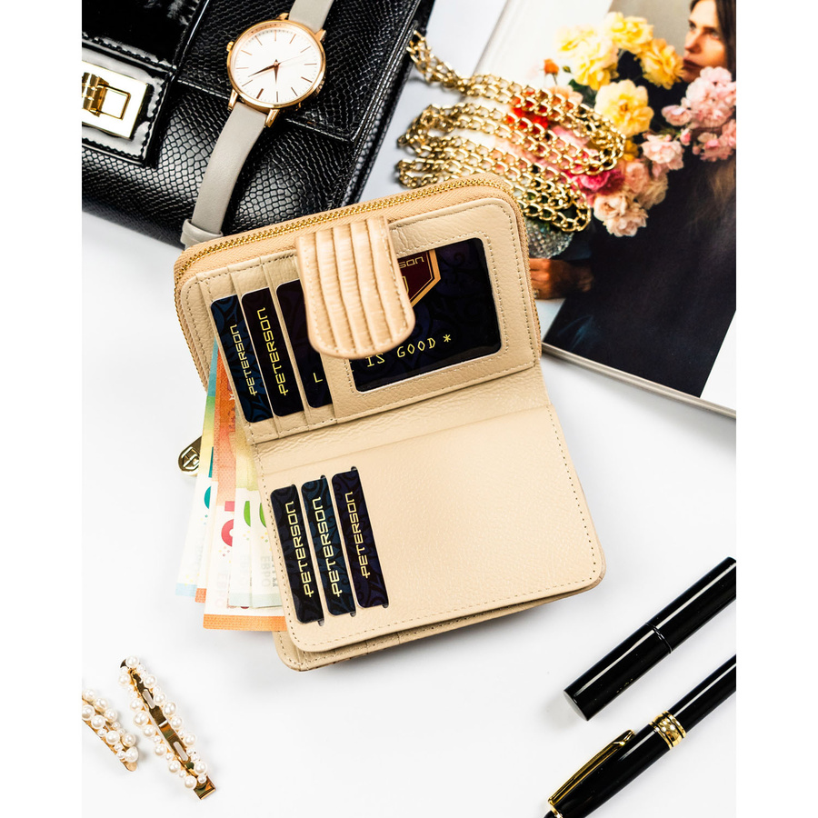 Portfel z ozdobną plecionką w beżowym kolorze, wykonany ze skóry naturalnej i ekologicznej - Peterson