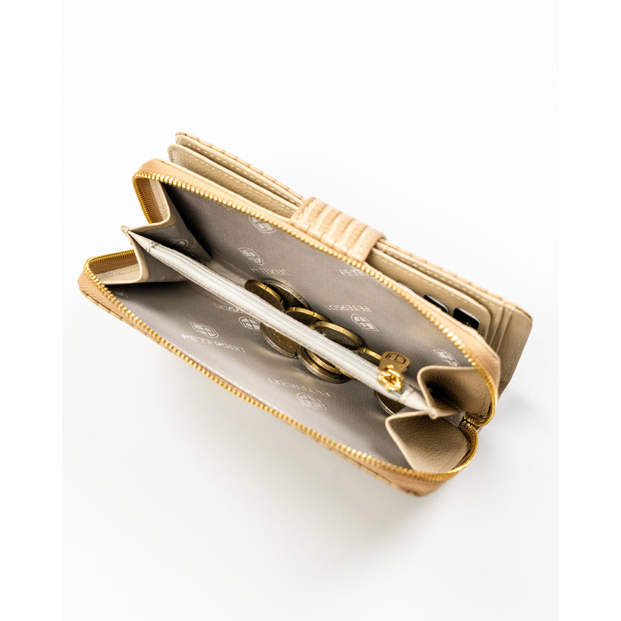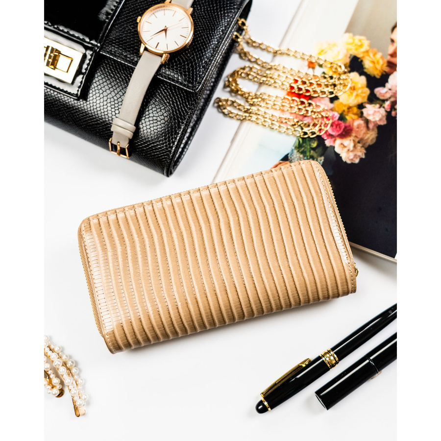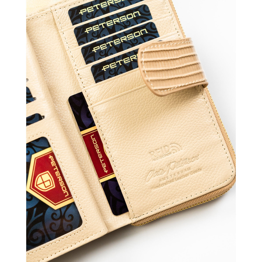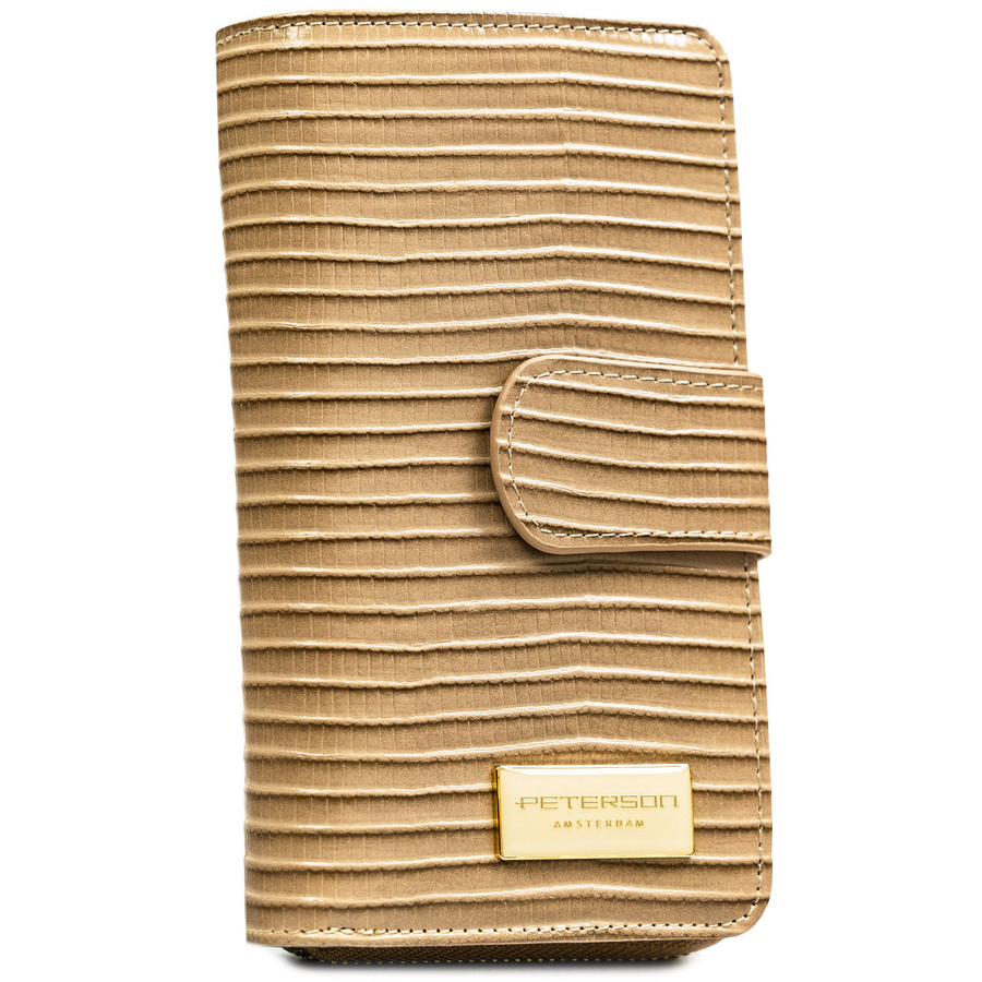 Beżowy portfel w orientacji pionowej wykonany ze skóry naturalnej i ekologicznej ze wzorem w plecionkę - Peterson