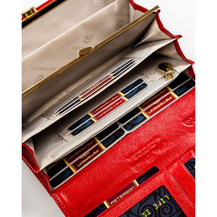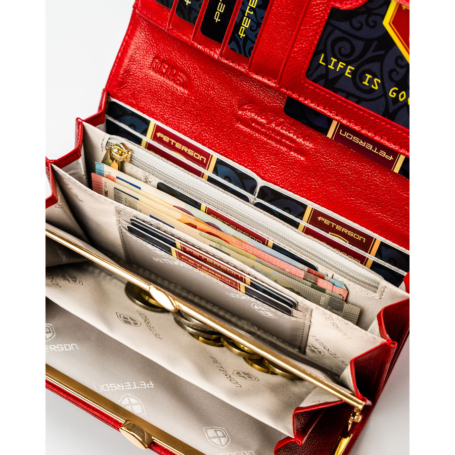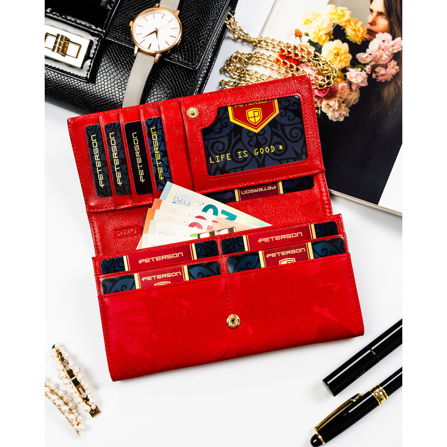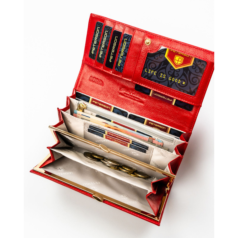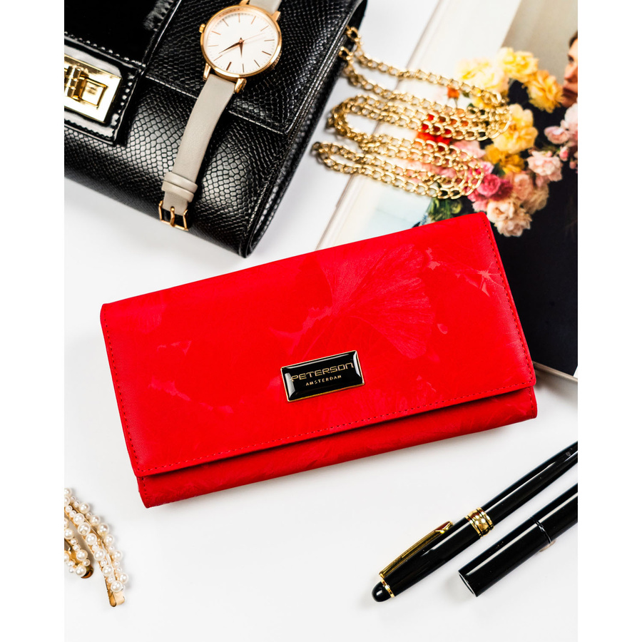 Czerwony portfel damski ze skóry naturalnej i ekologicznej zamykany zatrzaskiem - Peterson