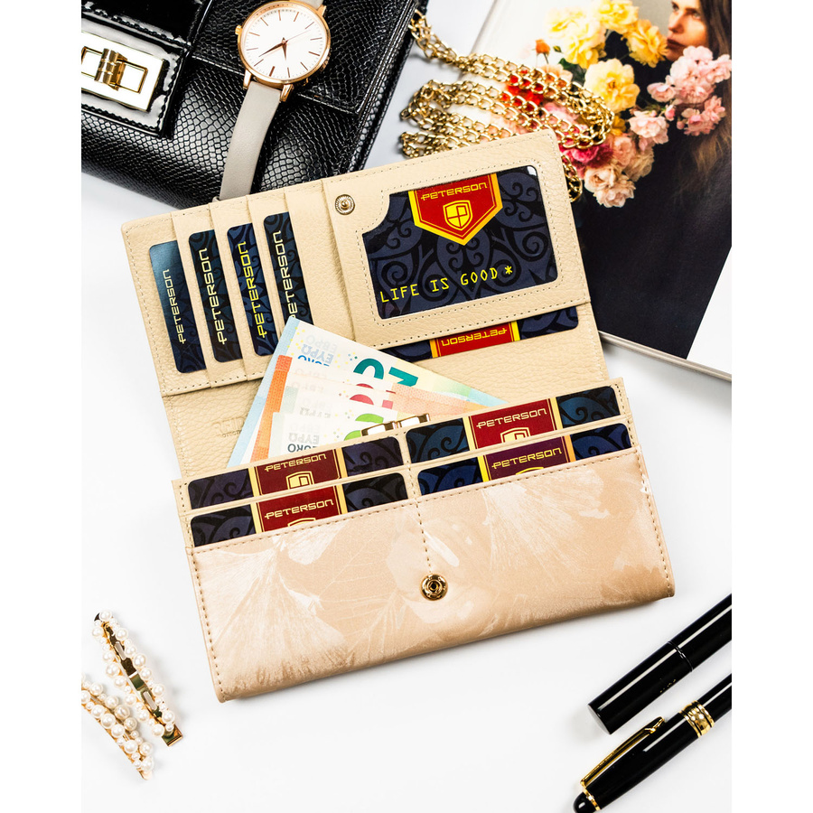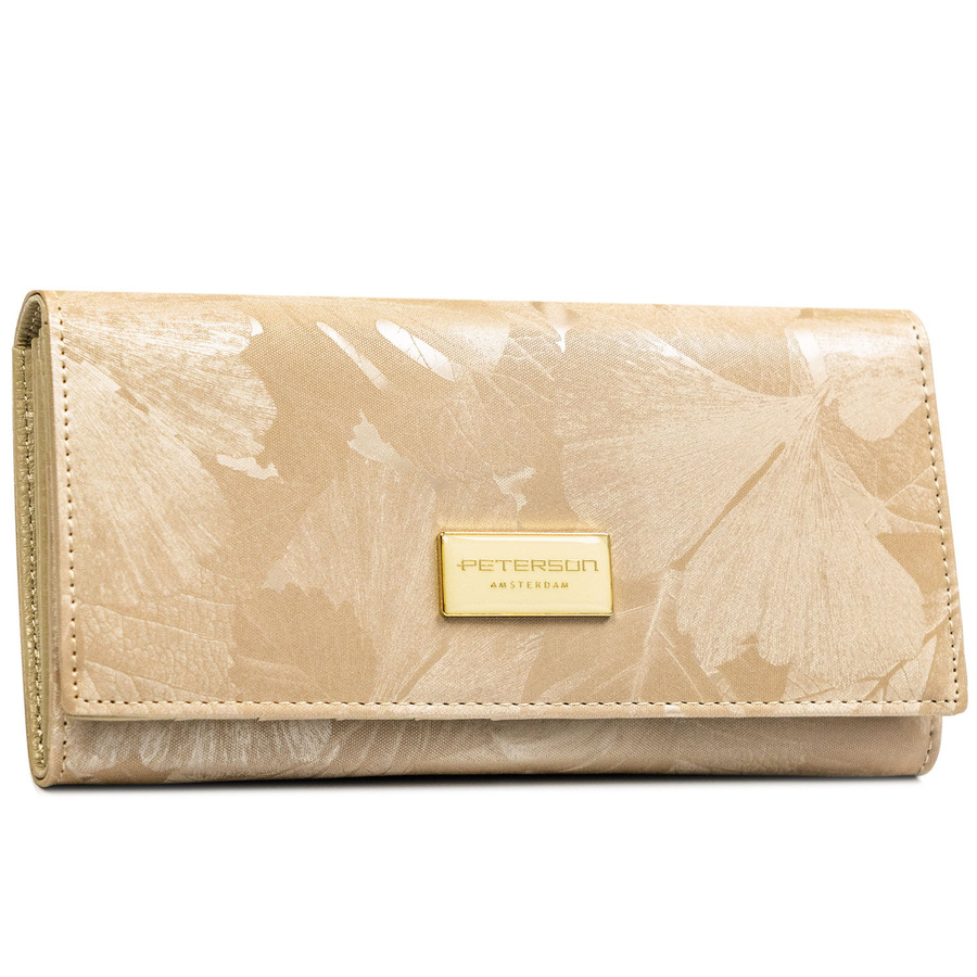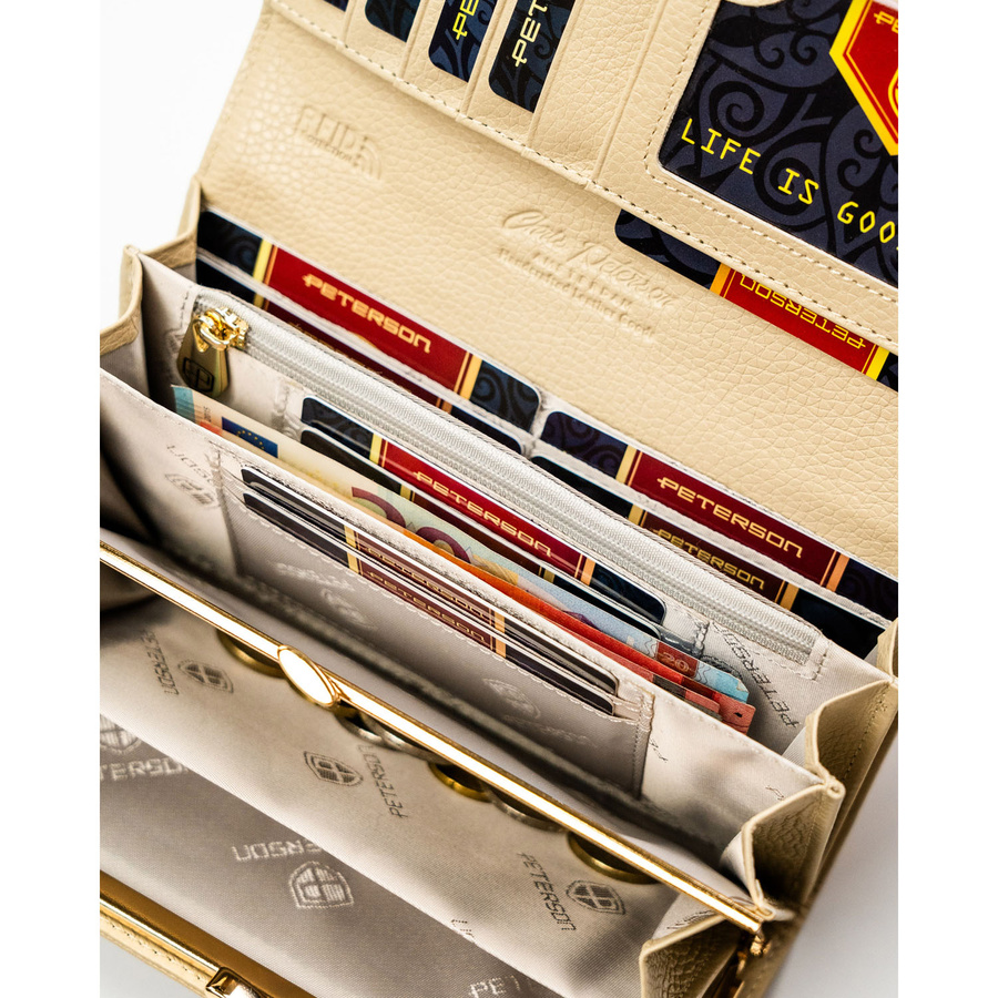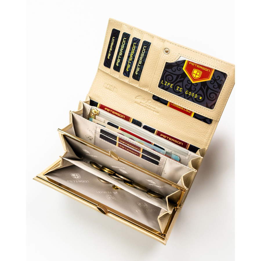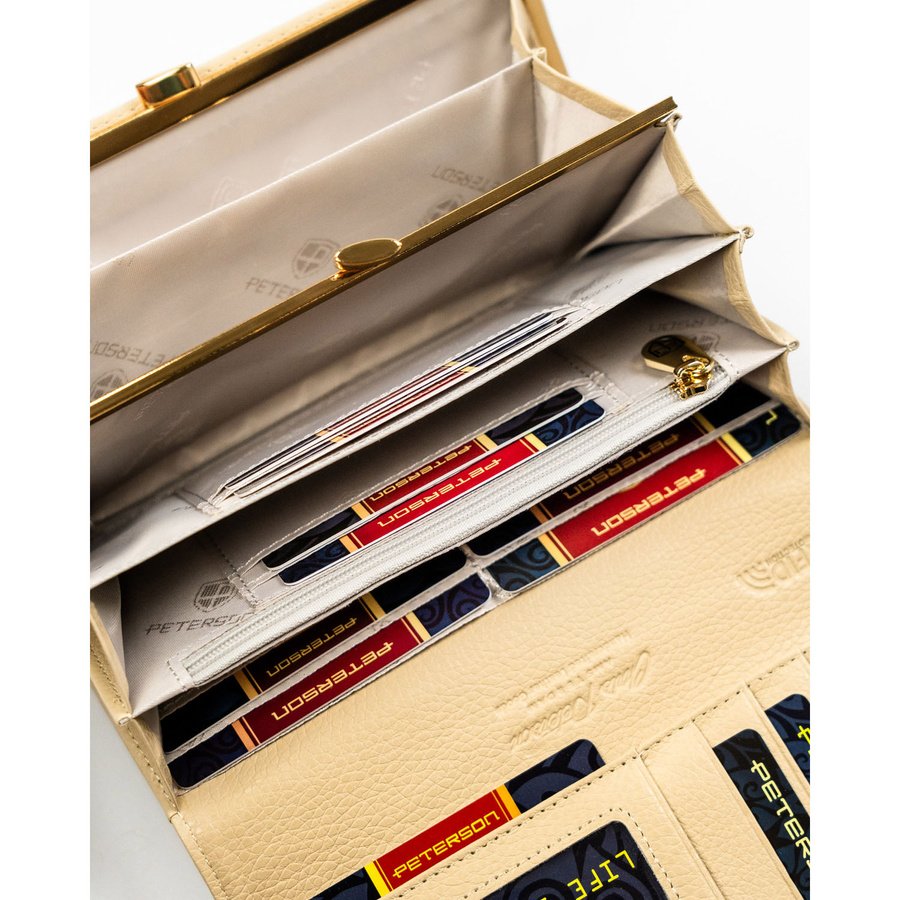 Beżowy portfel damski ze skóry naturalnej i ekologicznej zamykany zatrzaskiem - Peterson